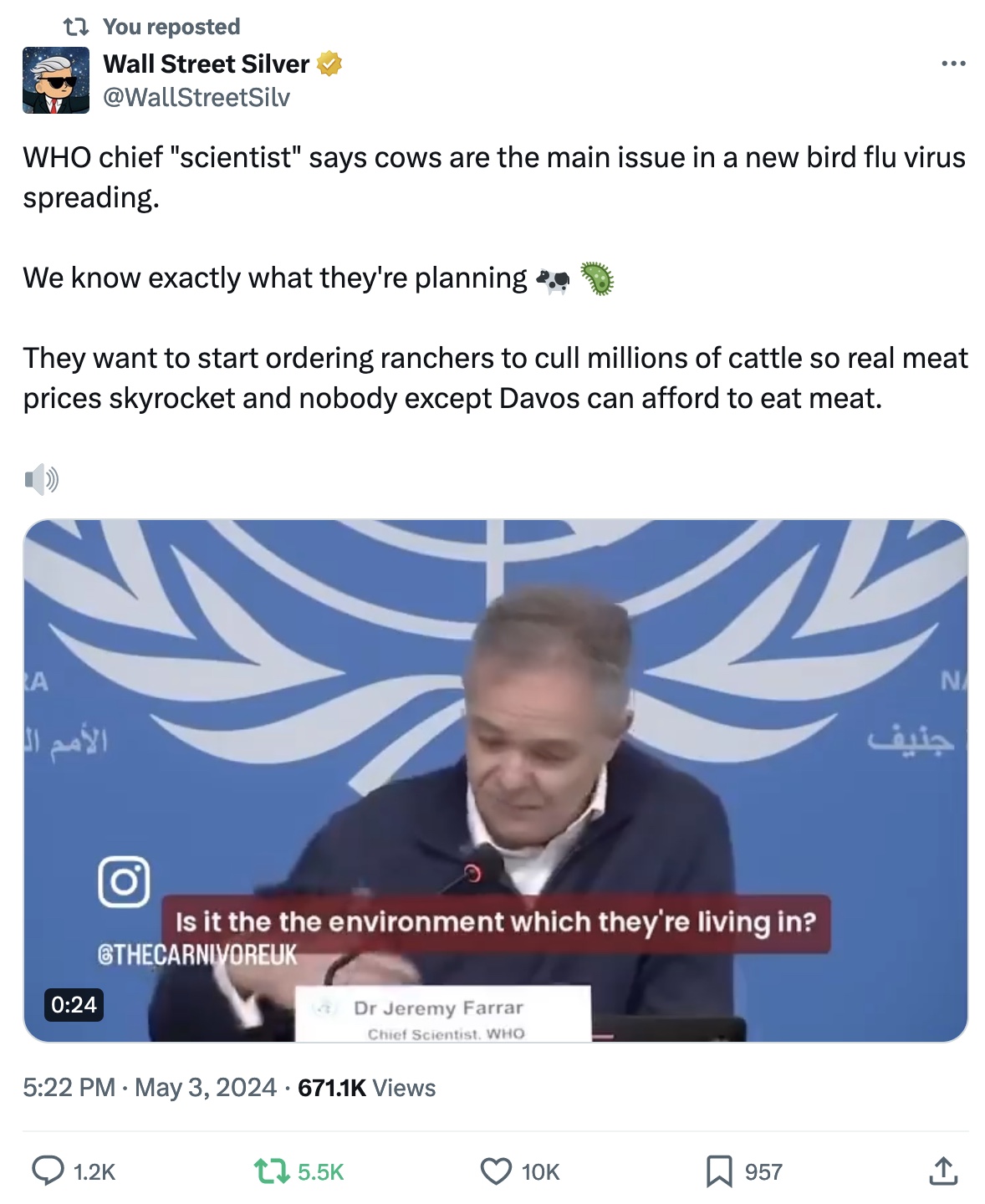 Jeremy Farrar aka the Spy Doctor aka 007 aka the WHO’s Chief Scientist pushing out anti-cattle propaganda now