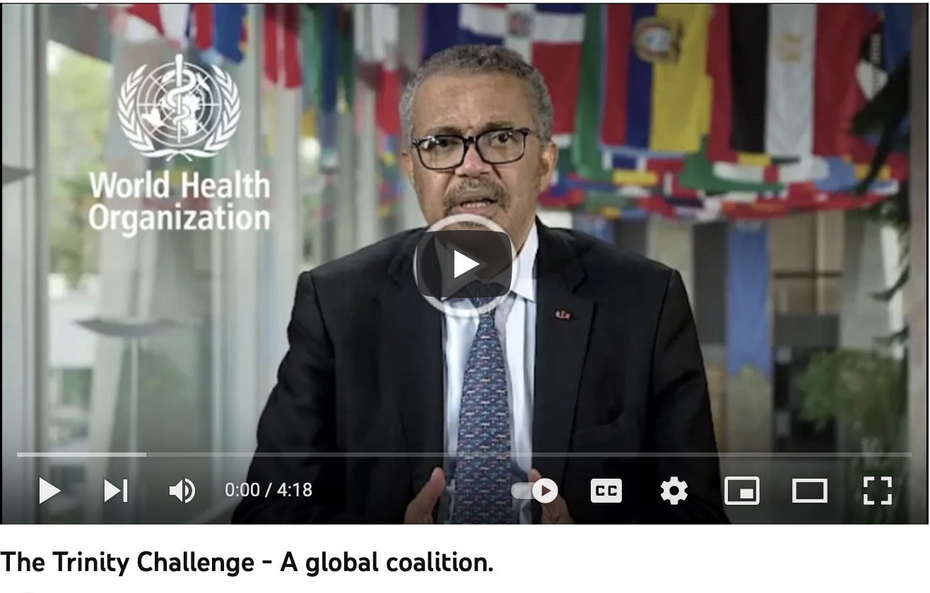 And guess what? The Global Virome Project [to produce viruses for the next pandemic] is supported by Tedros and friends at WHO through the Trinity Challenge—in which Daszak, Mazet and friends want donors and partners to fund them to keep catching viruses for fun and profit. You can watch Tedros and a bunch of other folks mouth platitudes about how important it is to ‘do something’ so it never happens again, here. I can’t embed the video, so I will just give you a screenshot.