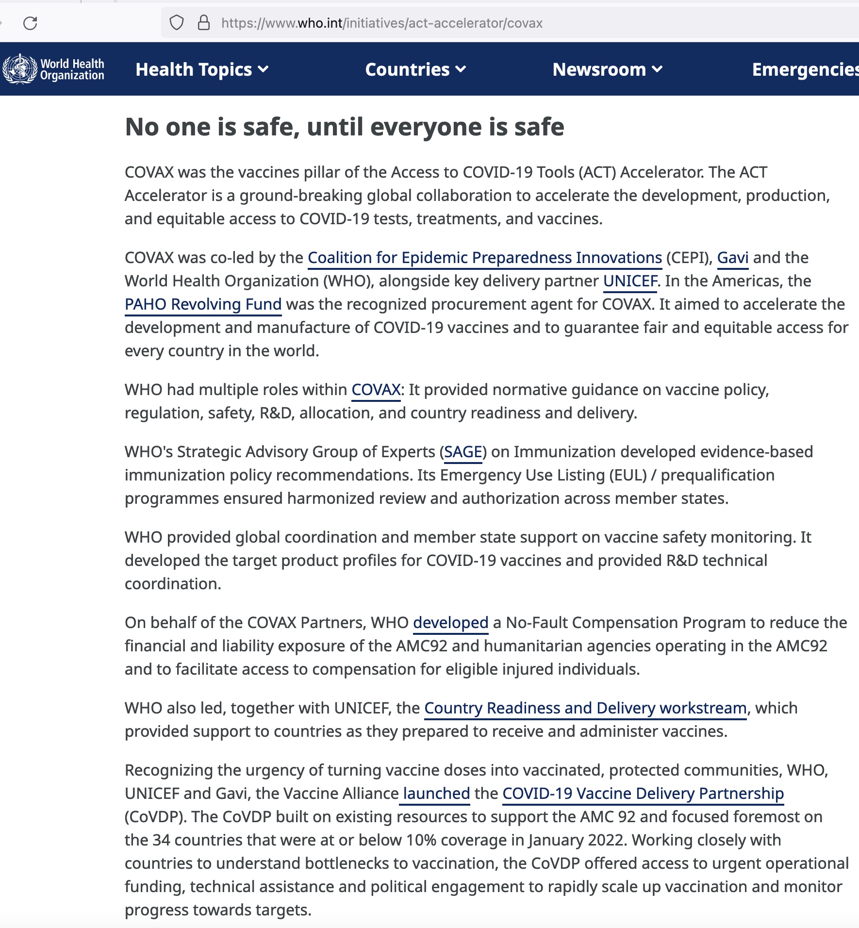 The WHO spokespeople, the WHO diplomats and the MSM keep saying the main reason for the IHR amendments and Pandemic Agreement idea was to provide equitable vaccines for developing countries—but the COVAX NGO (another Jeremy Farrar/Bill Gates invention) already sold cheap vaccines to the developing world for COVID.