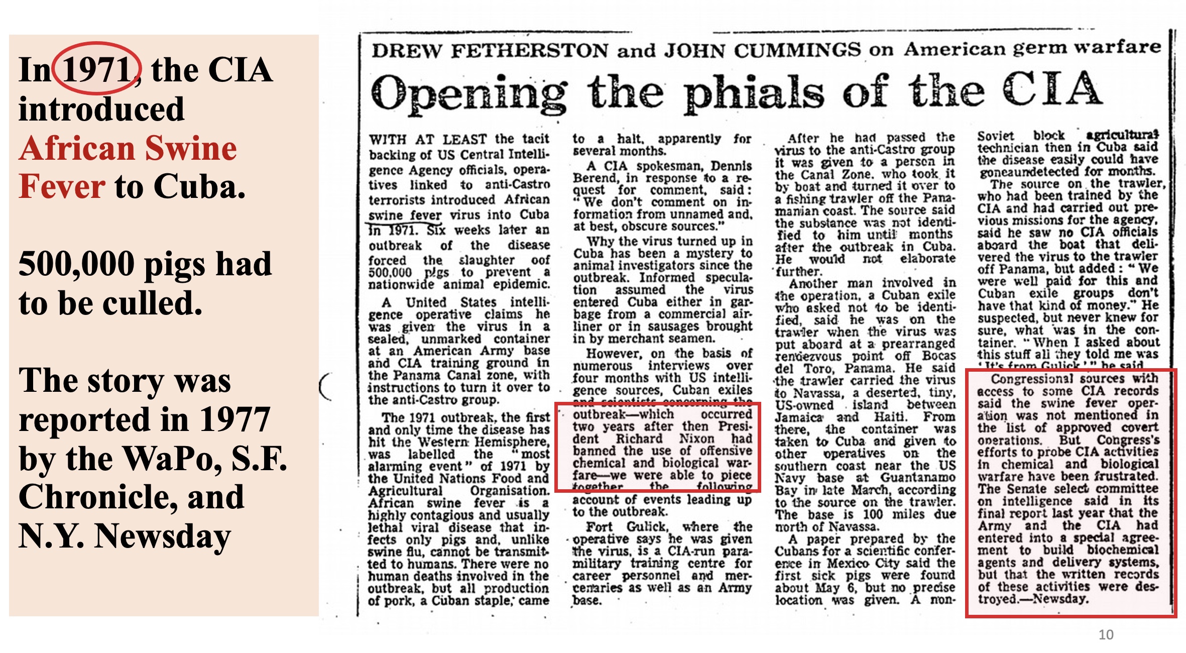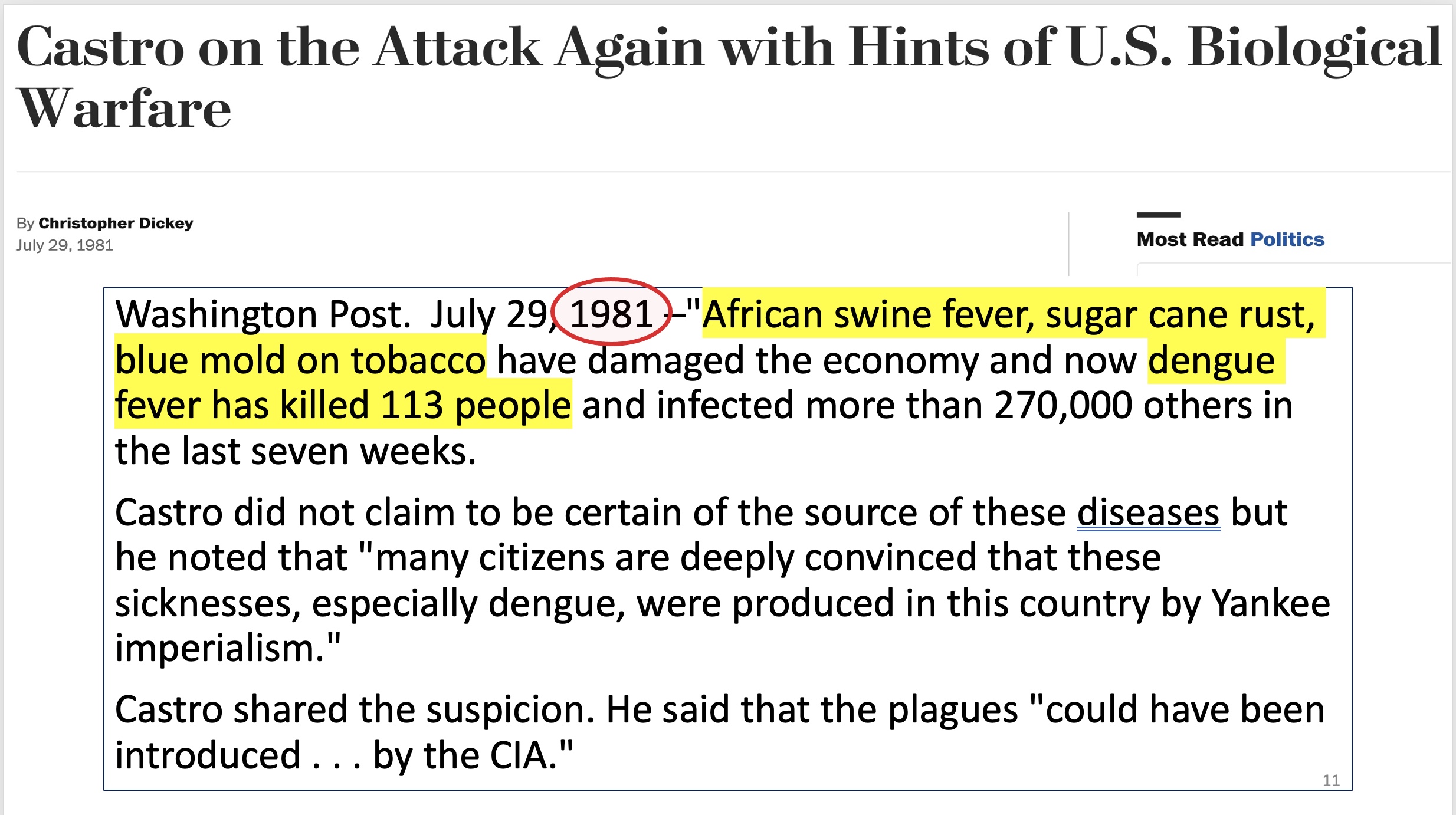 I did not understand why the US did this at the time, but subsequently realized that Cuba alleged that the US used biological weapons on Cuba after the US had become a party to the Biological Weapons Convention. (Here is my recent mention of several examples.)
