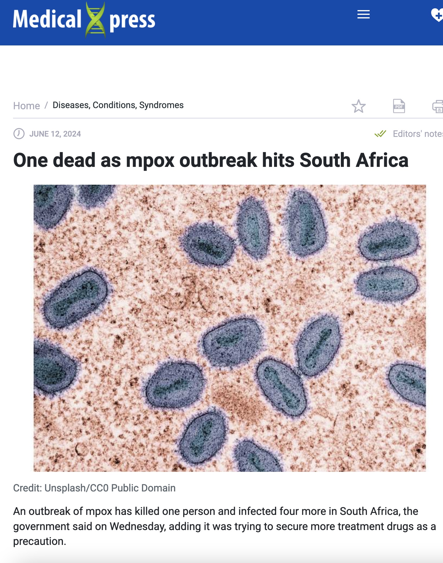 Building the $Moneypox Narrative: 1 person dead in South Africa