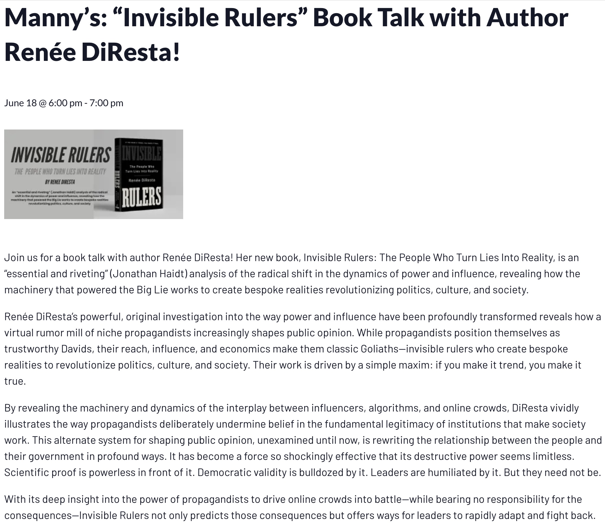 The Observatory’s main figurehead, Renee DiResta, “ex” CIA asset, just published a book about her wondrous exploits saving the world from TRUTH.