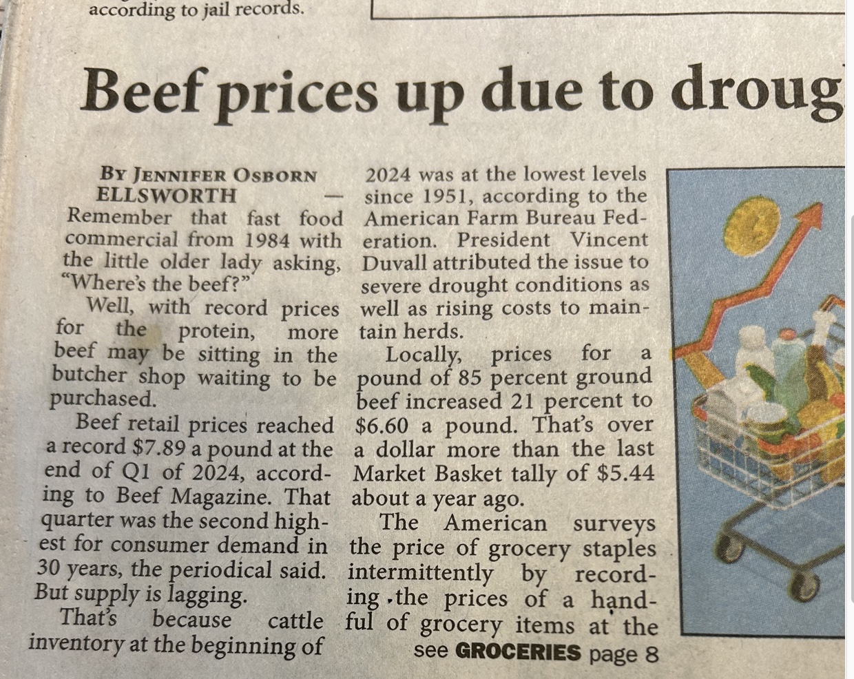 You think there is no attack on food, especially meat? This story was on the lower half of the page, and revealed that the cattle inventory in the US is at its lowest since 1951. When the US population was 150 million. It is 340-350 million now. The price of beef is very high, and yet there are few relatively few cattle being raised. Could it be a deliberately ornery regulatory milieu? Telling people meat is bad for you, which it probably is when juiced with so many chemicals? Or are we poorer than in 1951?
