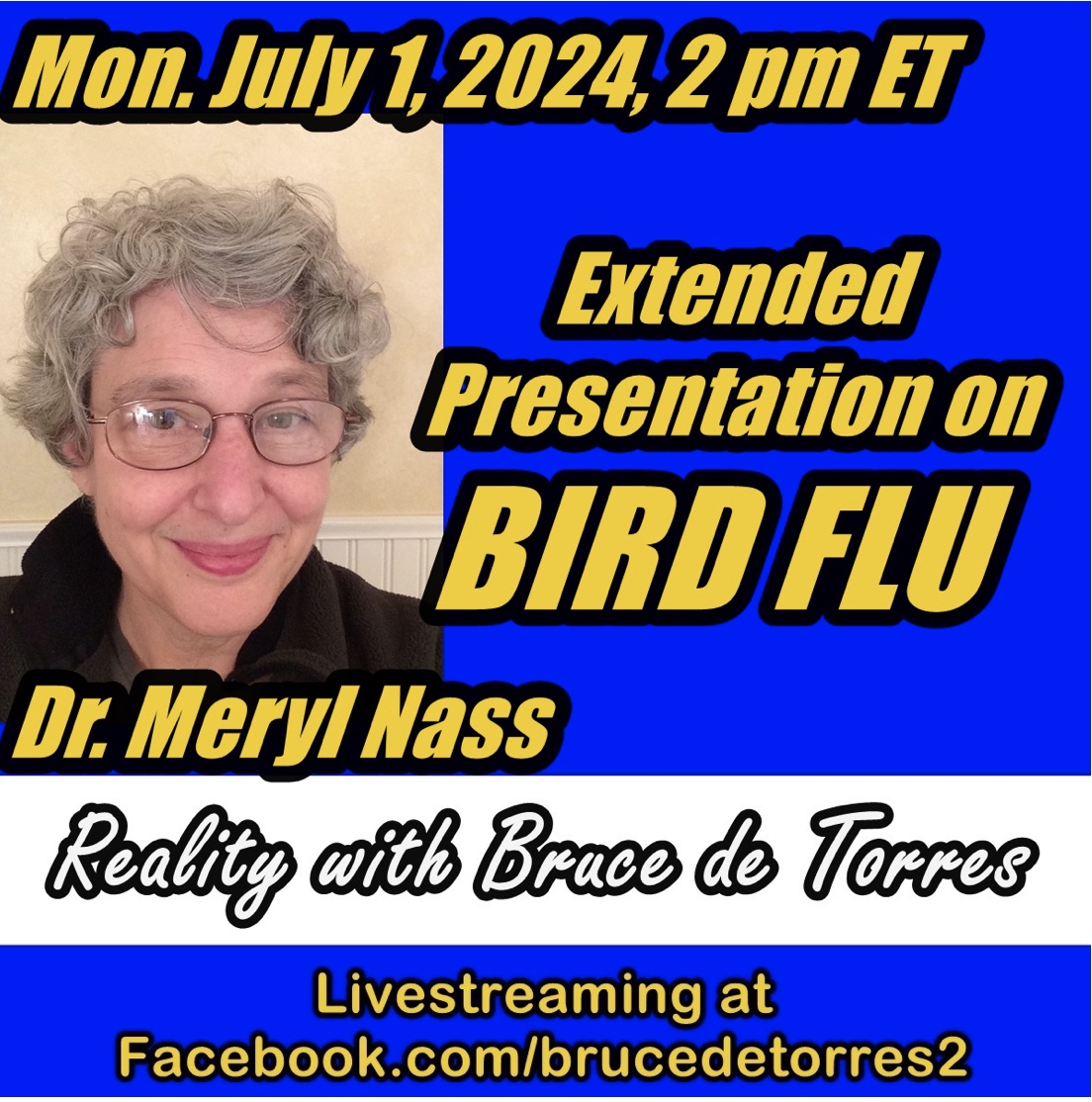 I will be doing an extended presentation on bird flu with Bruce de Torres at 2 pm ET tomorrow, July 1