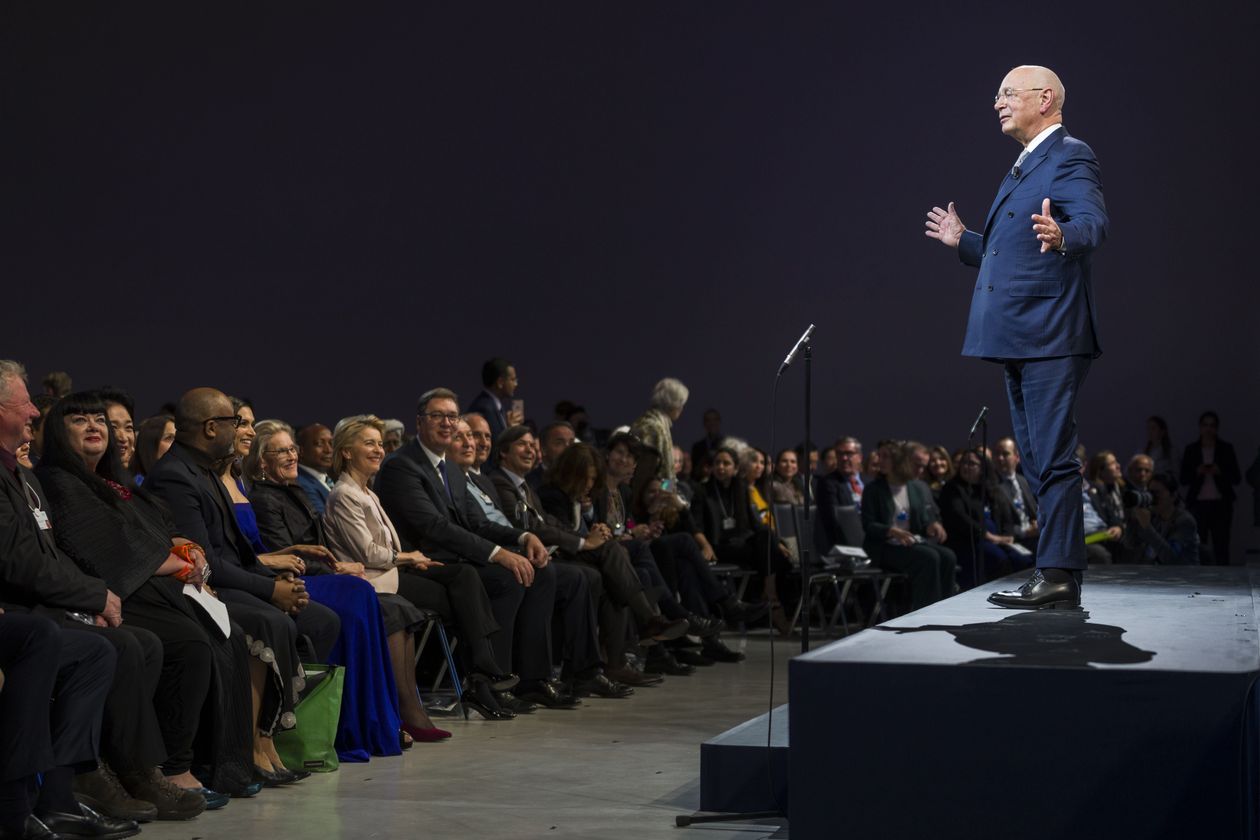 Klaus Schwab, Founder and Executive Chairman of the World Economic Forum, delivers the welcoming address at organization’s 50th annual meeting in Davos in 2020. Photo: Gian Ehrenzeller/EPA/Shutterstock