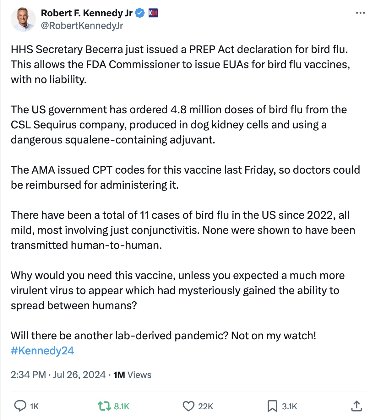 CDC's count: now up to 14 mild human cases in the US. We the people need to spread the word so the globalist authorities become too scared to release a souped up bird flu onto the world
