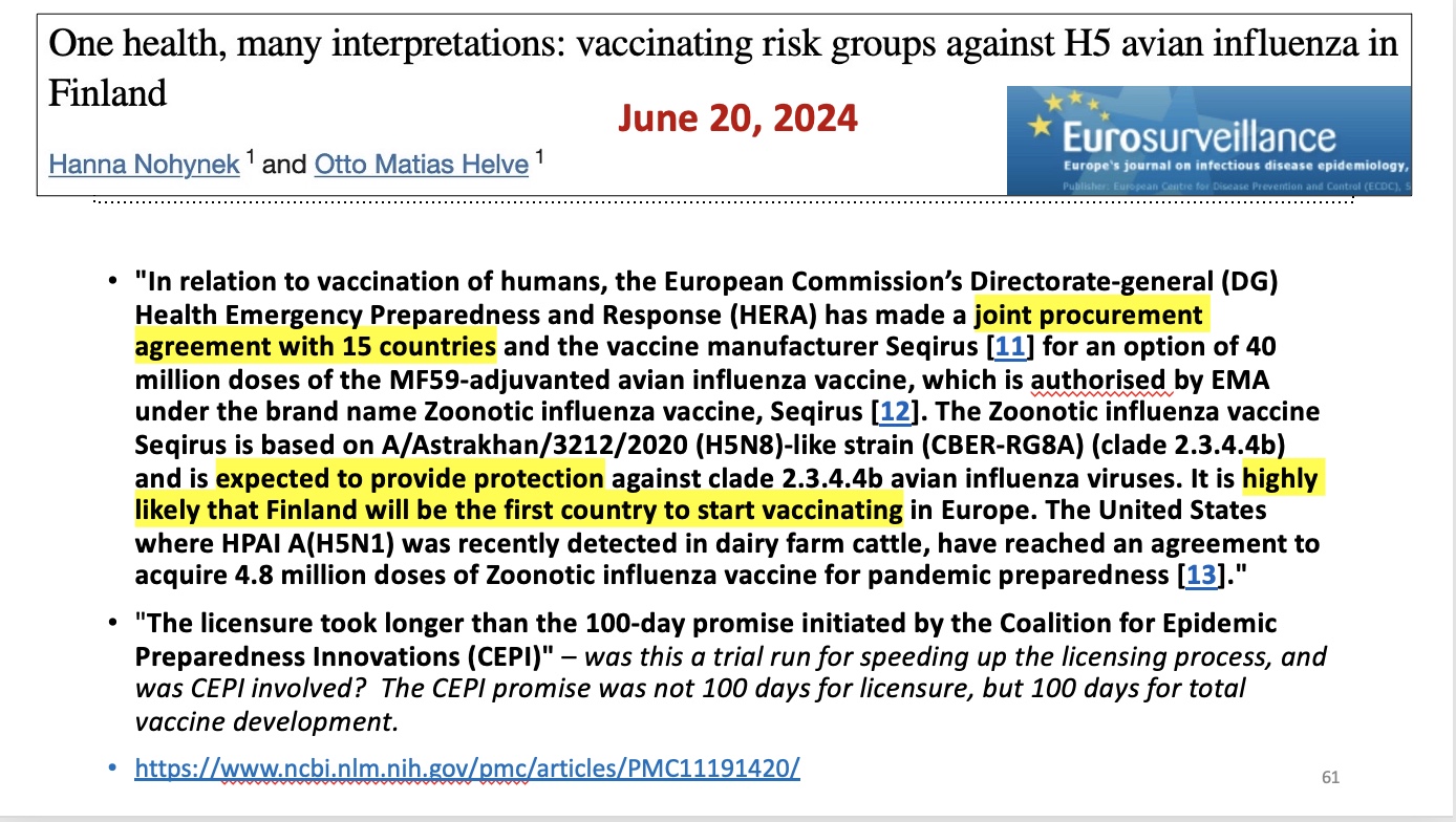 COMING SOON: WHO pushing the bird flu vaccines, new bird flu vax factories and contracts.