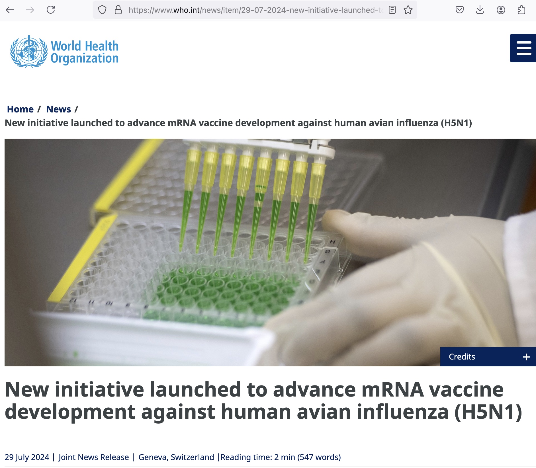 New initiative launched to advance mRNA vaccine development against human avian influenza (H5N1)