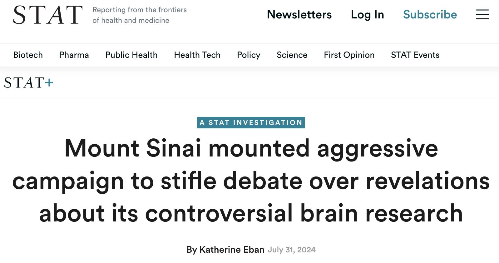 Well, naturally the ethical pivot hung on. And now NYC’s Mount Sinai hospital network (where my ex-husband once worked) is in big trouble for collecting bits of peoples’ brains without properly informing or asking. STAT would not be publishing this if it were not fully documented.