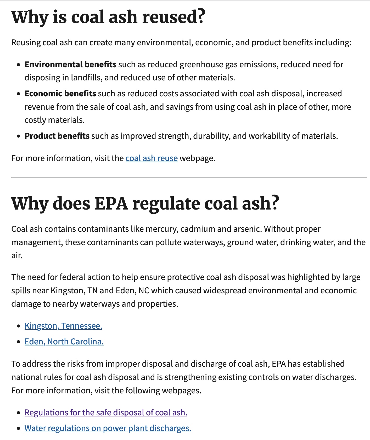But wait! EPA says the quiet part out loud. Reusing coal fly ash “can create …environmental benefits, such as reduced greenhouse gas emissions…”