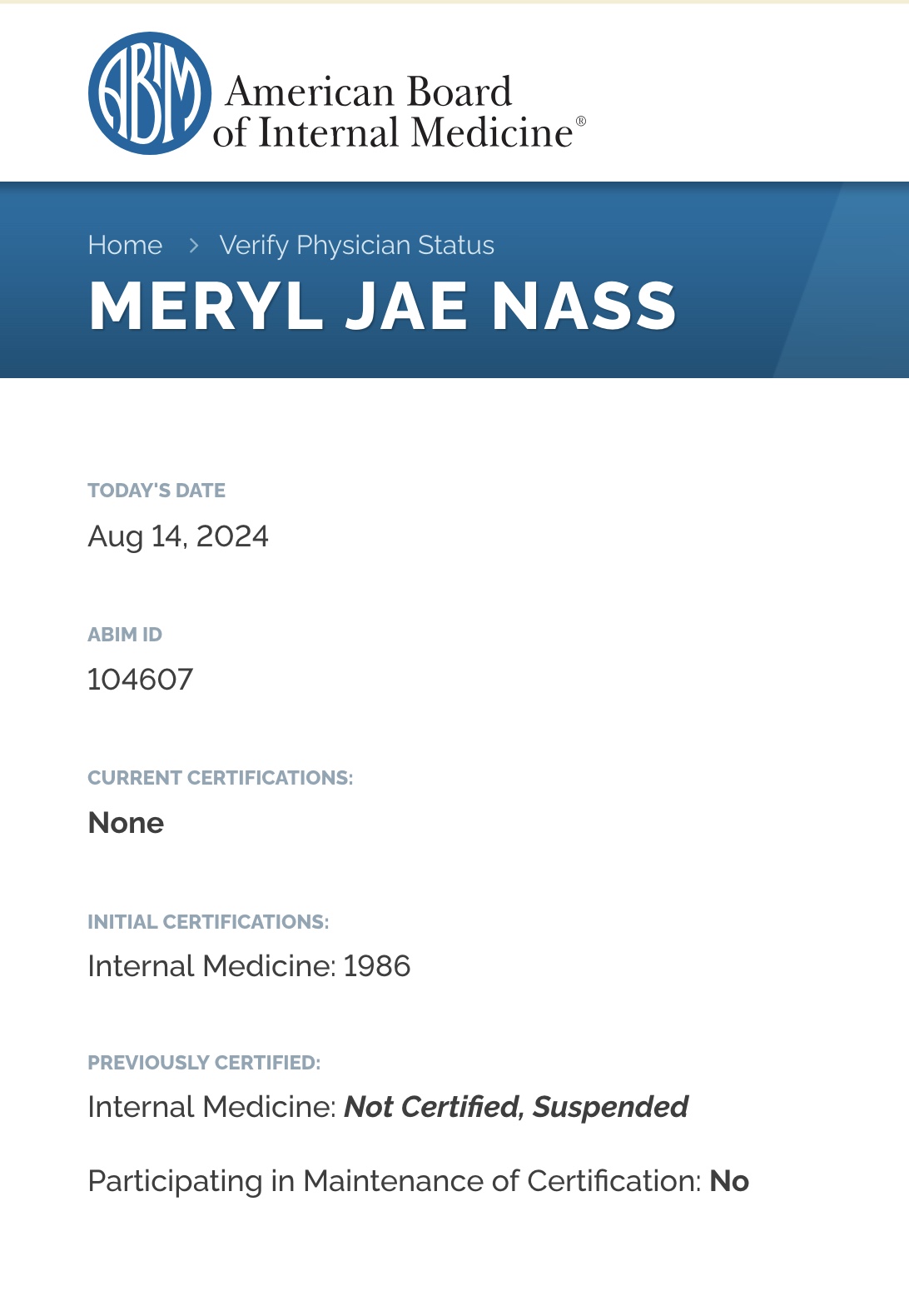 In 2021, ABIM and the Federation of State Medical Boards collaborated to draft the statement used to discipline Nass.
