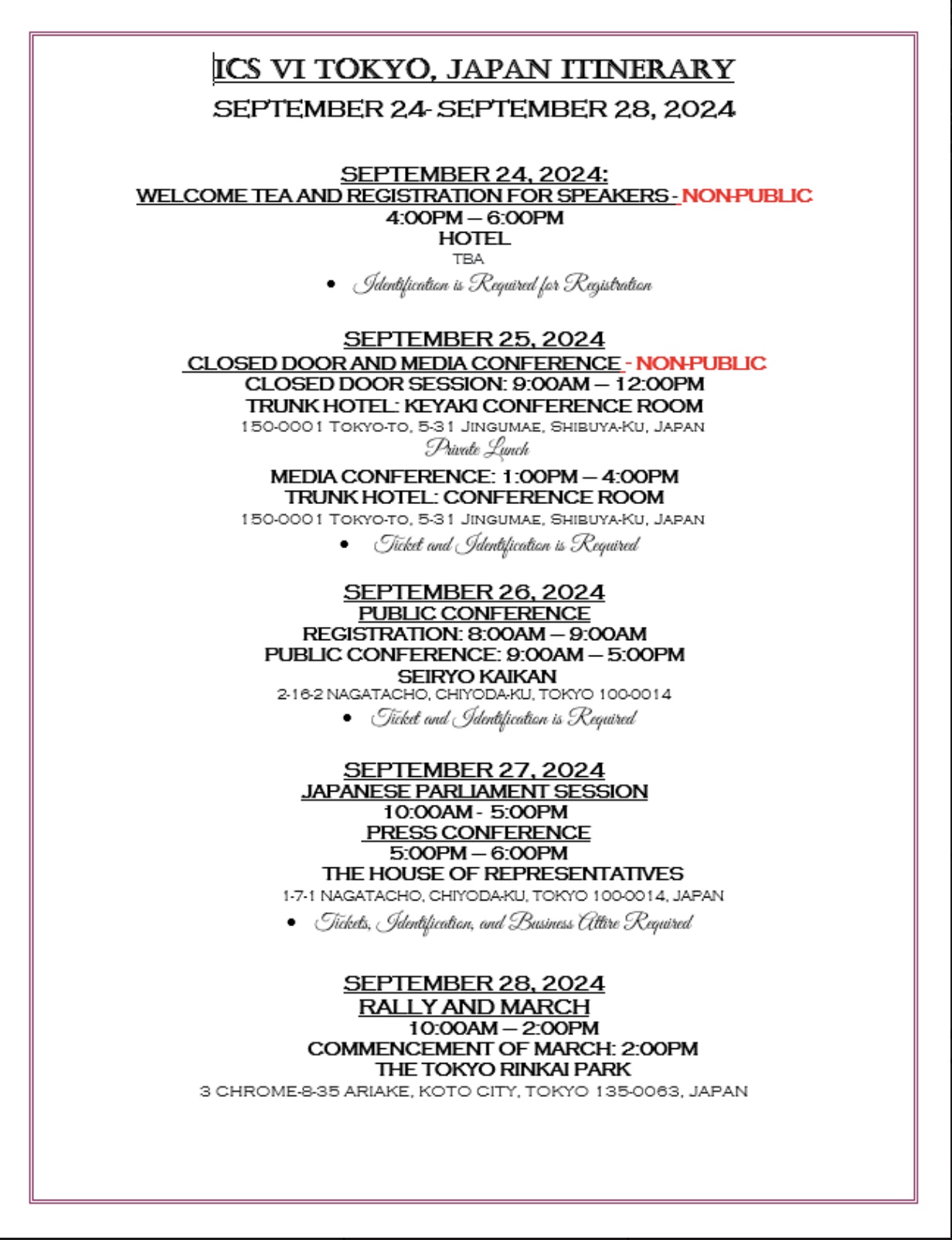Corrected: International Crisis Summit in Tokyo, Sept 24-28