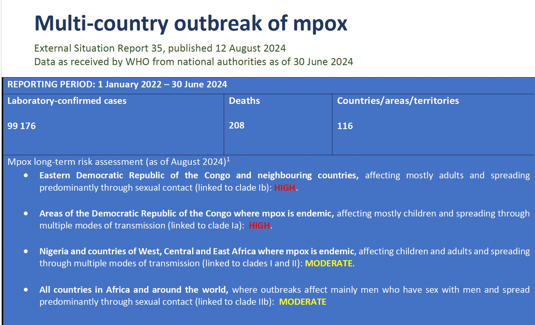This is an 18 page WHO document, dated August 12. It makes monkeypox appear not such a big problem by contextualizing the outbreak with lots more information.