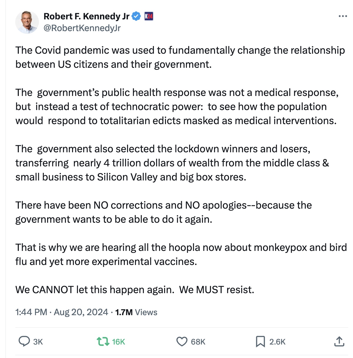Celia Farber says more people watched Bobby in the debate than CNN. I noticed the # screening RFK’s Real Debate went from about 1.9 million to 5.4 million by the end.