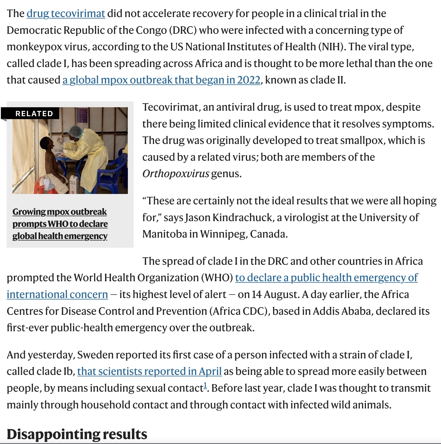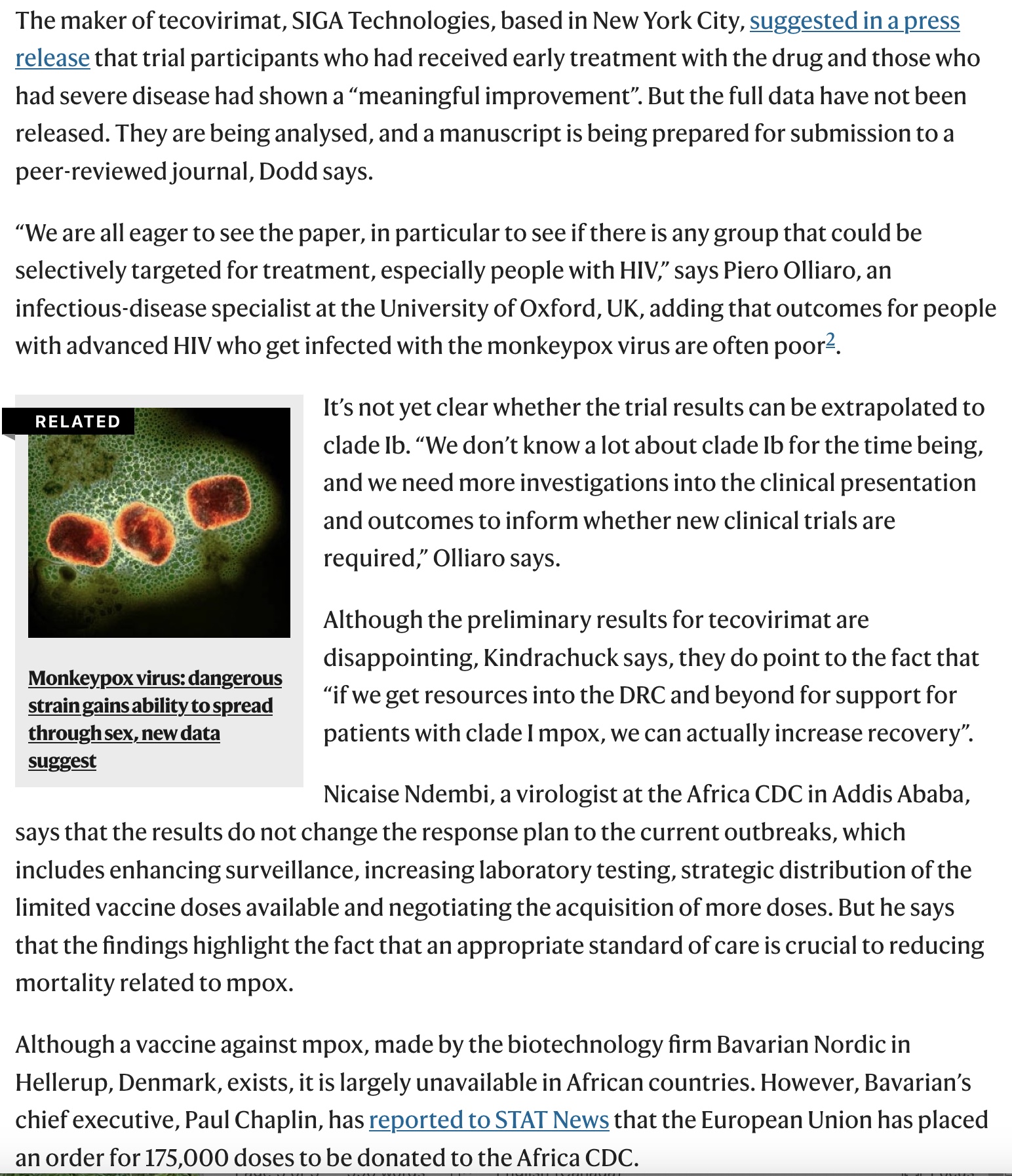 I told you, if you want to make up deaths, Congo is probably the easiest place in the world to get away with it. WHO is giving out TPOXX though NIH says it does not work against Congo's moneypox