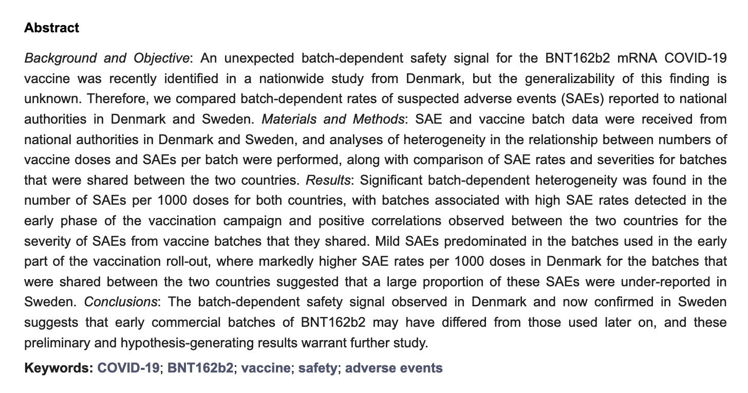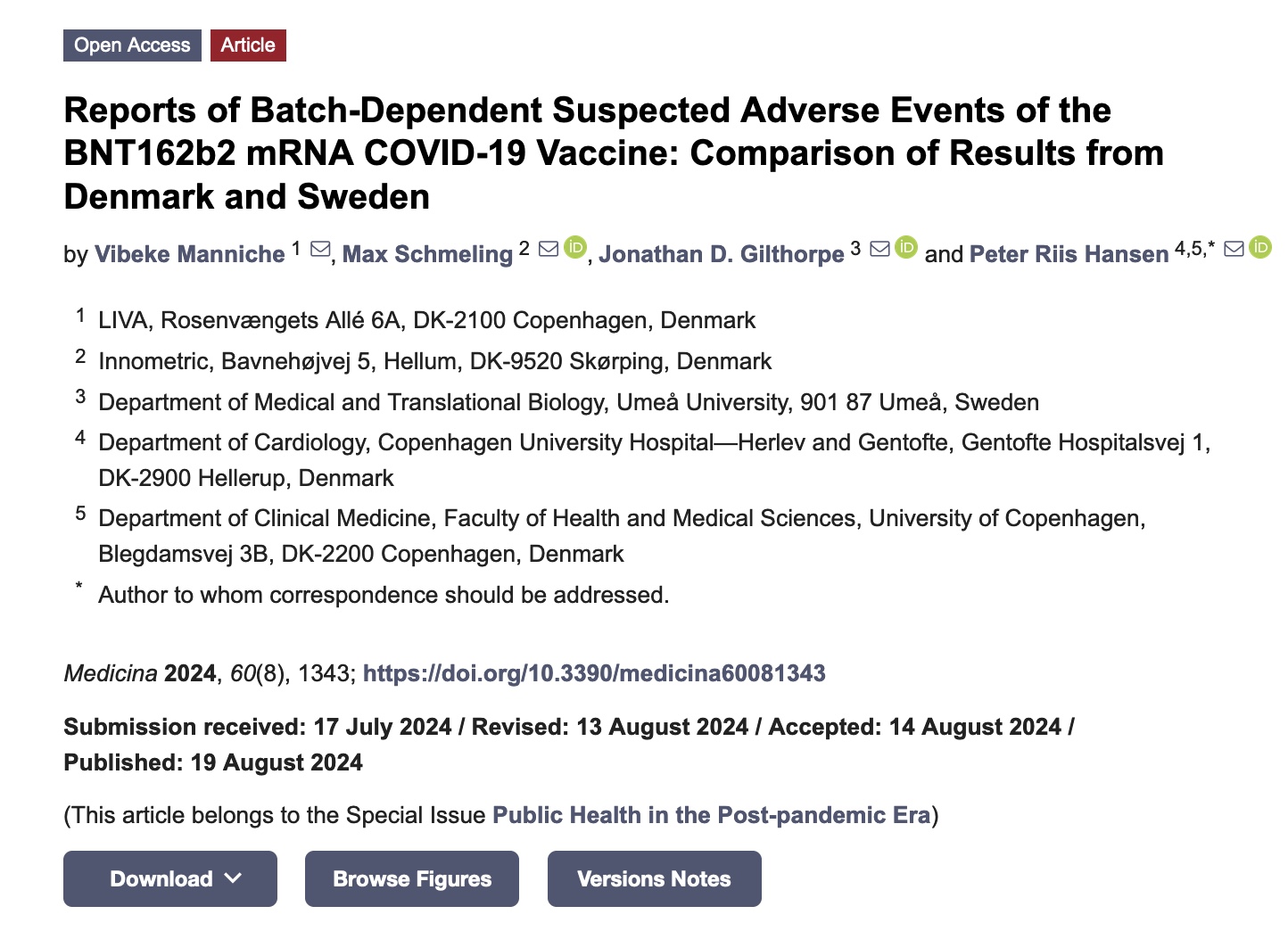 A Third Peer-Reviewed Paper from 2 more countries (Denmark and Sweden) reveals significant differences in adverse events by batch. Was it Vaccination or Russian Roulette?