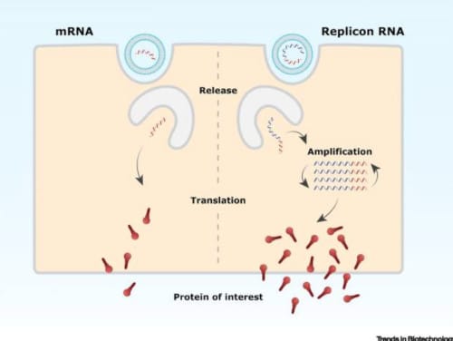 So, what’s an sa-mRNA (or “replicon”) vaccine, anyway? For the answer, you can turn to the scientific studies and articles that have been published on this topic in the past decade, from “Self-Amplifying Replicon RNA Vaccine Delivery to Dendritic Cells by Synthetic Nanoparticles” (2014) to “Self-amplifying RNA vaccines for infectious diseases” (2020) to “Rise of the RNA machines – self-amplification in mRNA vaccine design” (2023)—all of which will explain this technology in lucid, easily understandable prose.