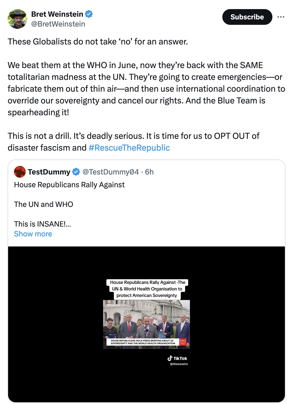 Yesterday House Republicans gave a press conference about the UN and WHO’s efforts to grab our sovereignty