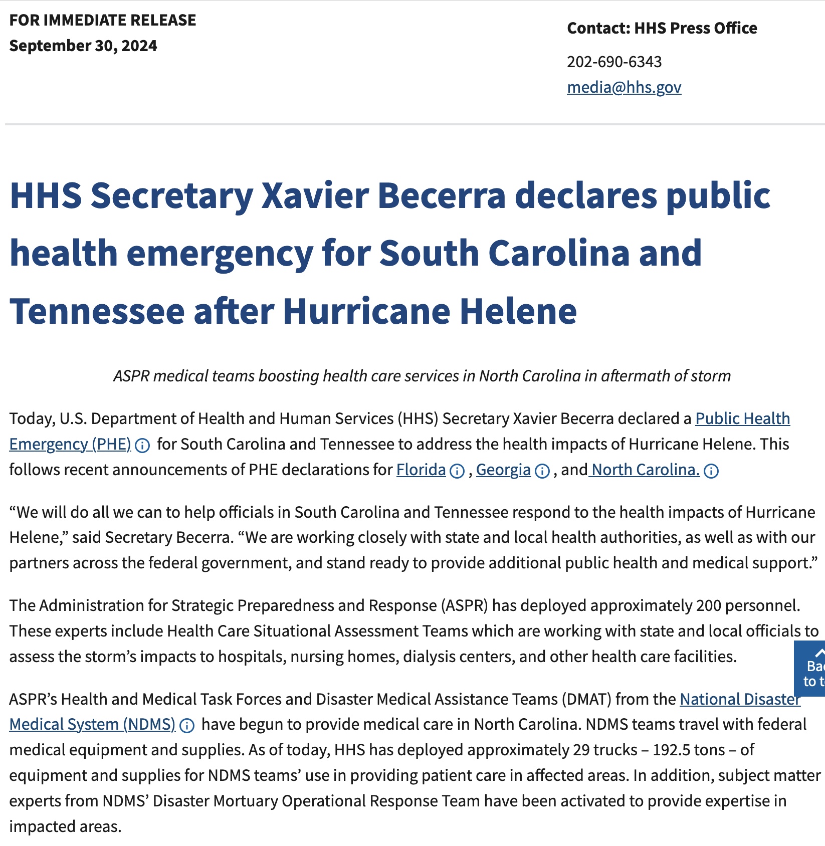 https://www.hhs.gov/about/news/2024/09/30/hhs-secretary-xavier-becerra-declares-public-health-emergency-south-carolina-tennessee-hurricane-helene.html