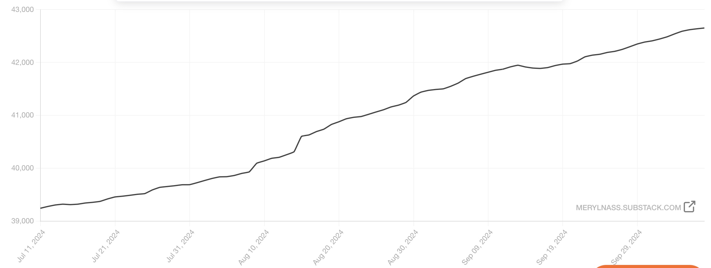 Here are graphics of my total subscribers on substack and revenues for the past 3 months. I have about 42,000 subscribers and 53,000 followers.