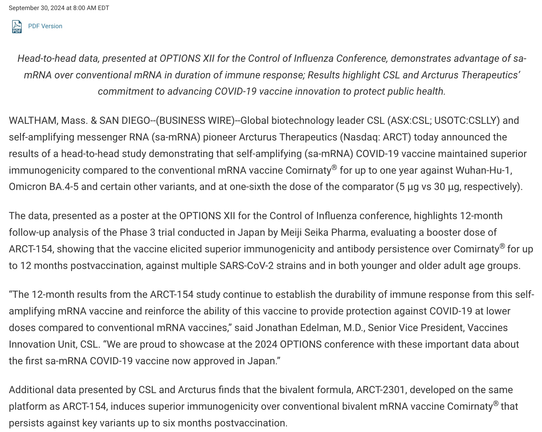 2 gutsy companies (Arcturus and CSL) test drive their first-in-class vaccine in Japan--and how this ties in with the 100 day vaccine promise of CEPI and the globalists