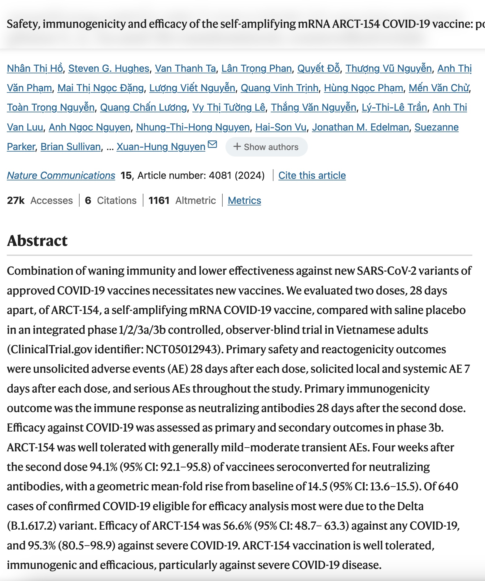 The duration of enrollment for the Vietnam study of the self-amplifying mRNA vaccine was “up to three months” and averaged one month of followup after the first dose: