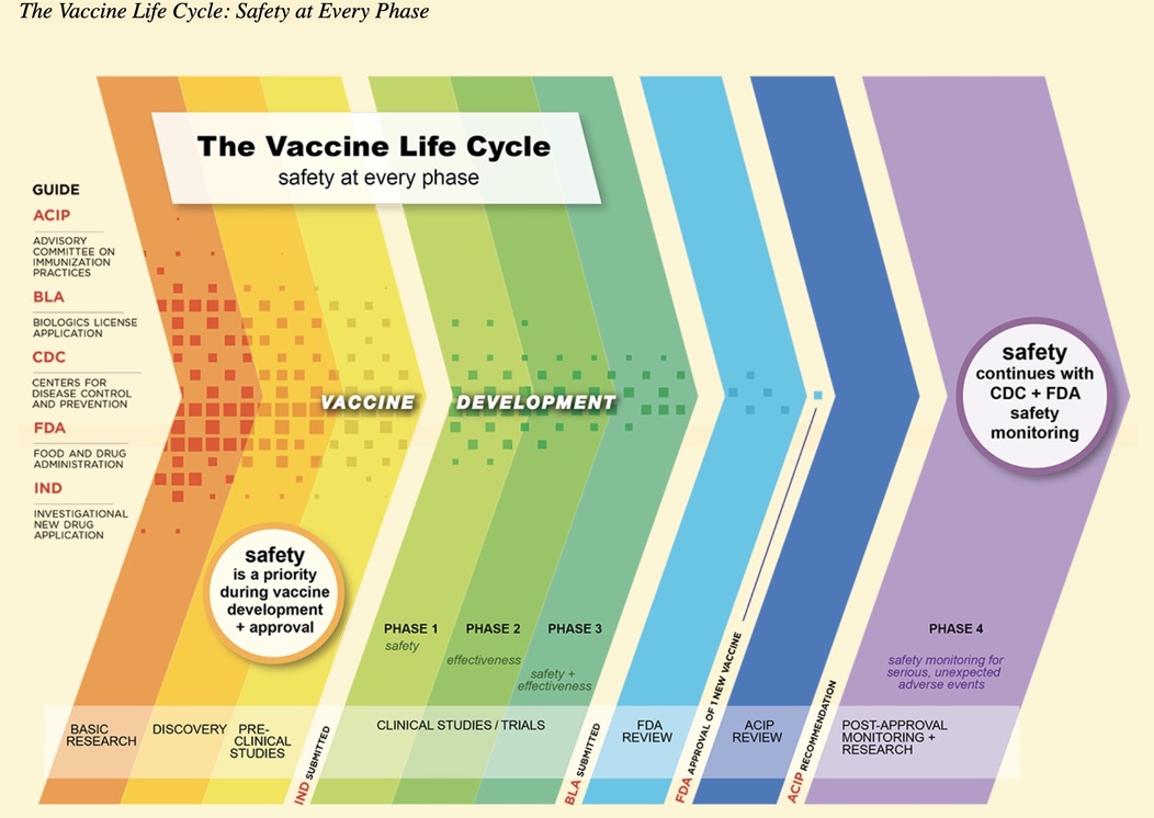 Below is a [pre-COVID] CDC chart designed to show what happens during the 10-15 years it takes to develop a vaccine. Most vaccine candidates never make it to licensure because they are not safe or effective or require too high a dose to be economic.