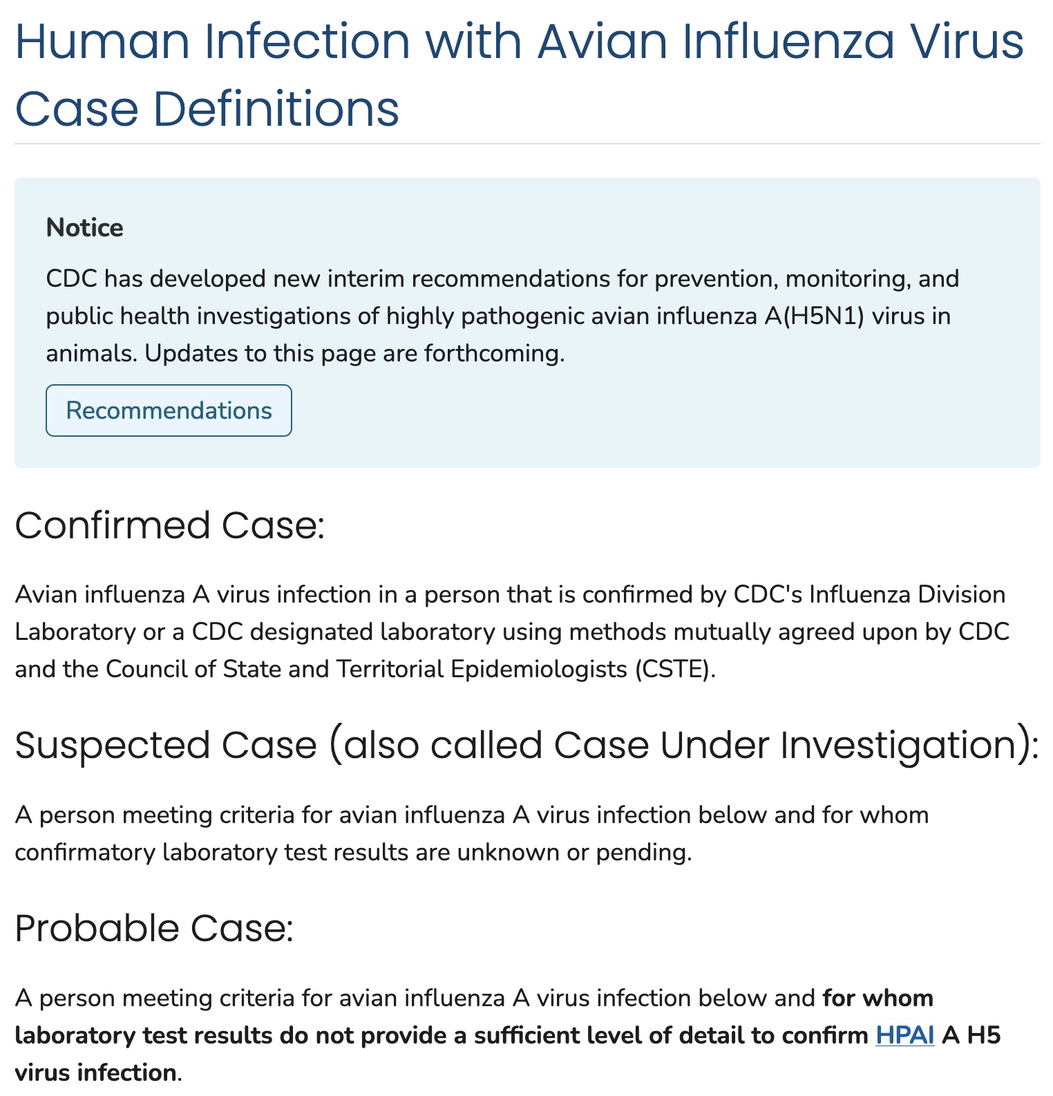 Bird Flu cases jumped from 16 to 31 in past few days–but CDC refuses to tell us how it defines a case. Is CDC a public health agency or a collection of spin doctors?