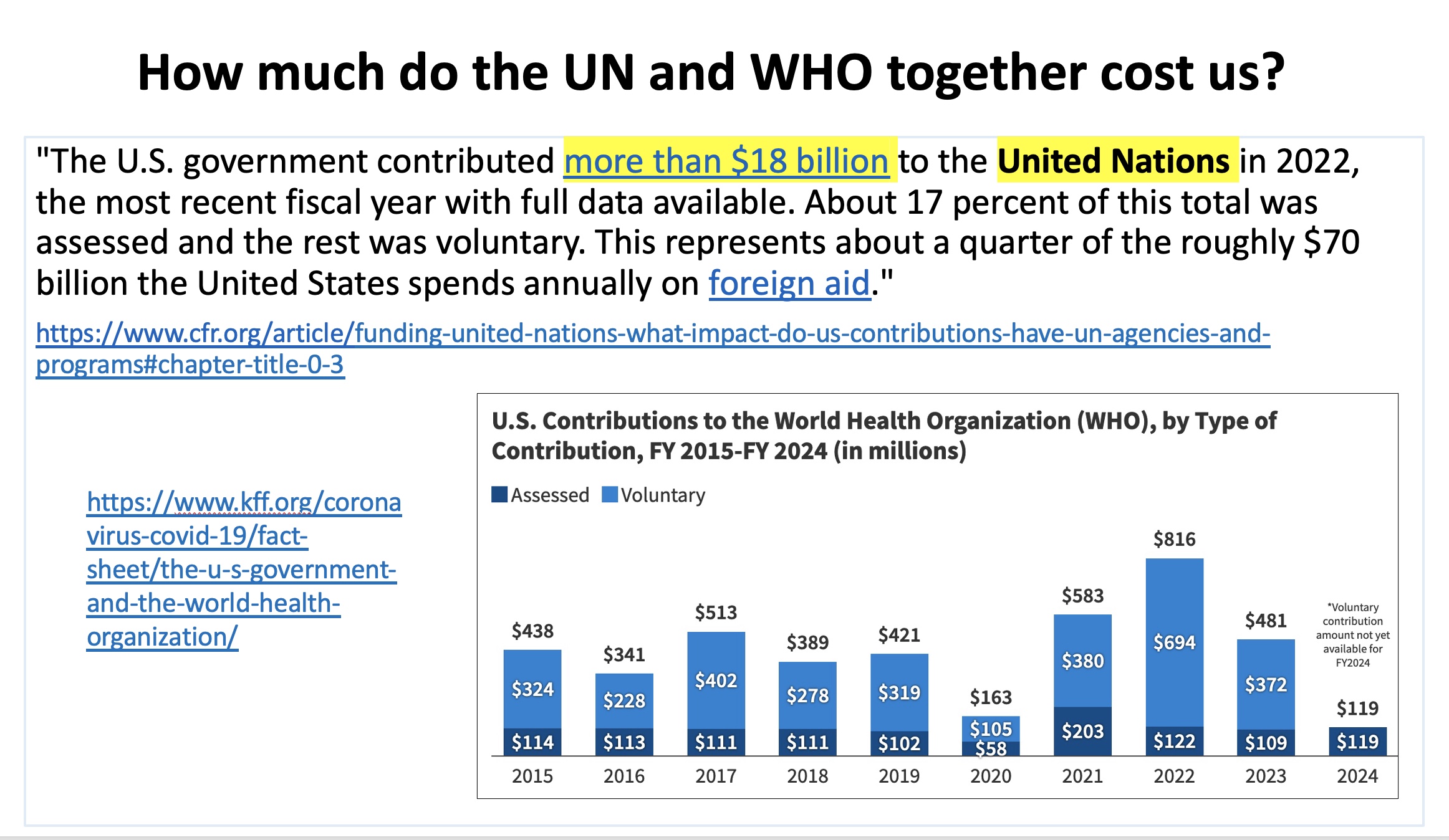 What do we pay for the UN and WHO now? Under Biden, we averaged $627 million/year going to the WHO.