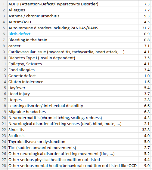 I asked 10,000 parents to tell me about their kids and listed a huge range of chronic diseases including two negative controls to validate the results.