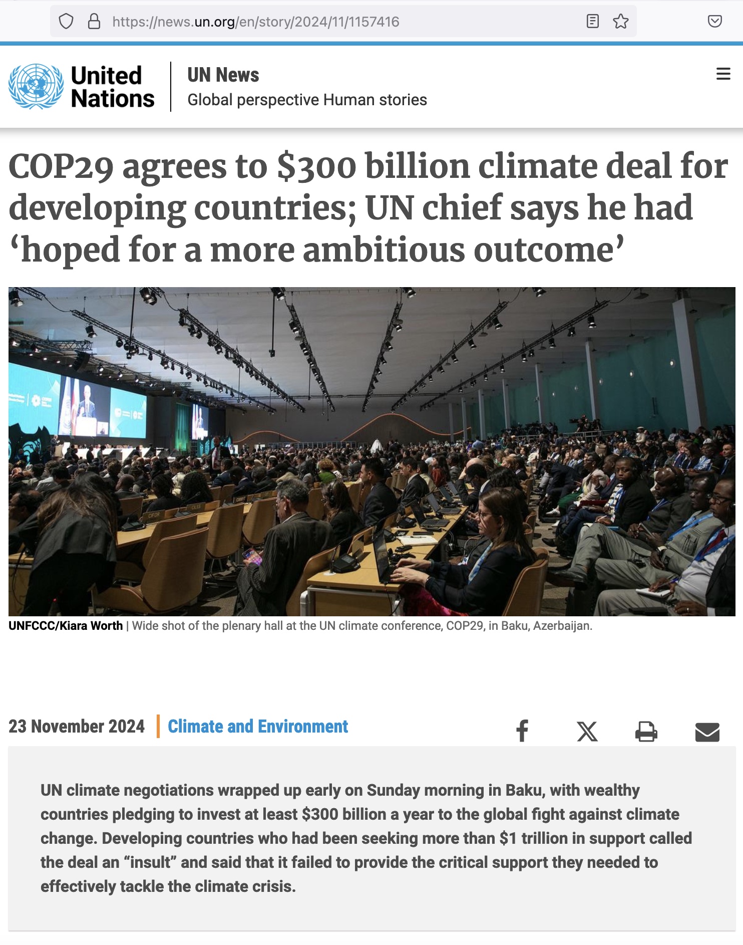 After two weeks of intense negotiations, delegates at COP29, formally the 29th Conference of Parties to the UN Framework Convention on Climate Change (UNFCCC), agreed to provide this funding annually, with an overall climate financing target to reach “at least $1.3 trillion by 2035”.