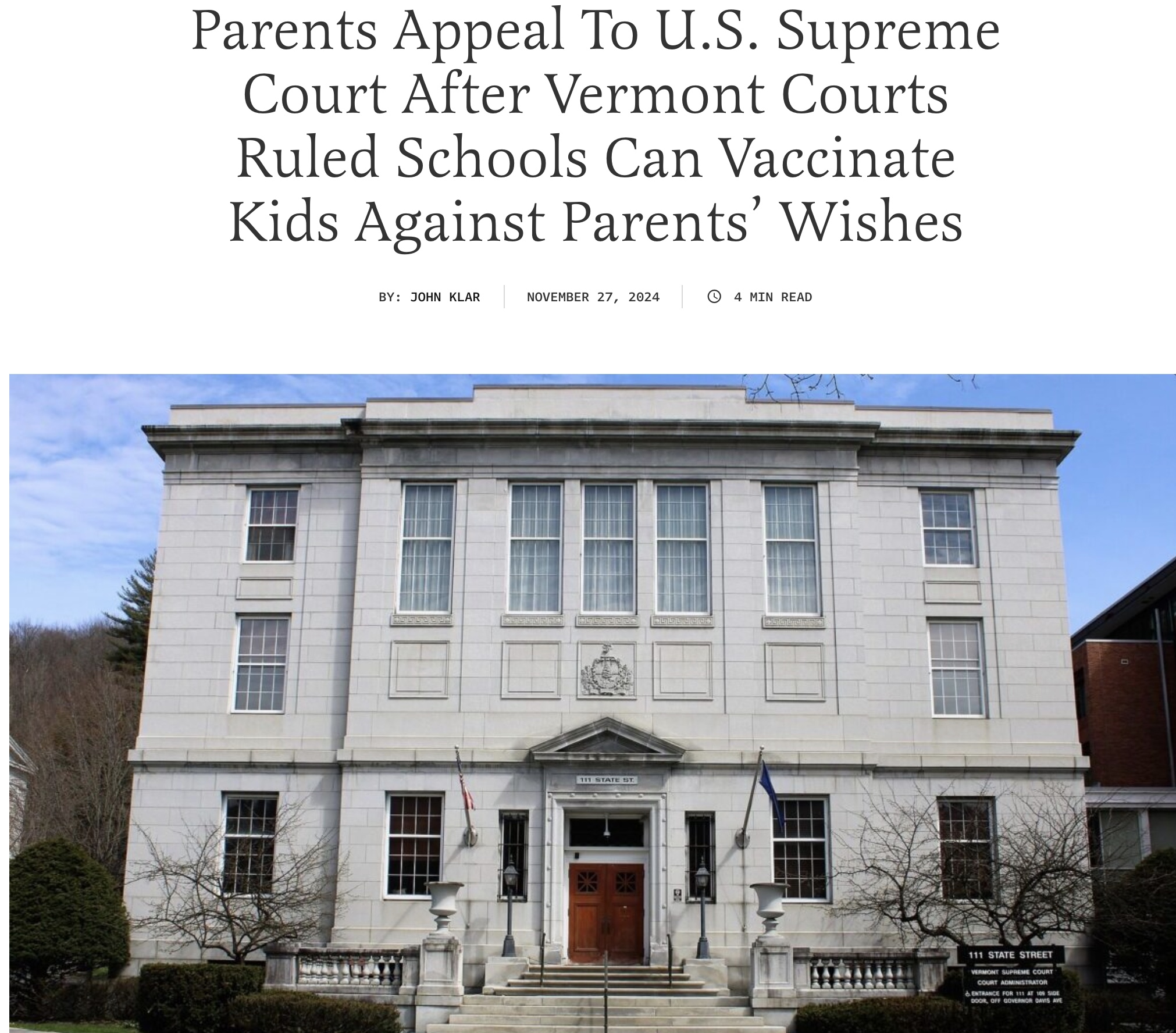 Can schools just vaccinate children against the parents’ and child’s wishes? Vermont’s Supreme Court said yes. Will the US Supreme Court weigh in on this issue?