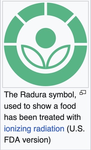 Unbelievably, FDA approved gamma rays emitted from radioactive forms of the element cobalt (Cobalt 60 is a byproduct of a nuclear reactor) or of the element cesium (Cesium 137 produced by nuclear fission in nuclear reactors), X-rays produced by reflecting a high-energy stream into food, or a high-energy electron beam propelled from an accelerator into foods including: beef and pork, crustaceans, fresh fruits and vegetables, lettuce and spinach, poultry, seeds for sprouting, shell eggs, shellfish, spices and seasonings. [I think there may be a third form of irradiation used for food. Foods are supposed to be labelled when irradiated (for shelf life extension of course) but I have never been able to find the Radura logo on foods.—Nass)