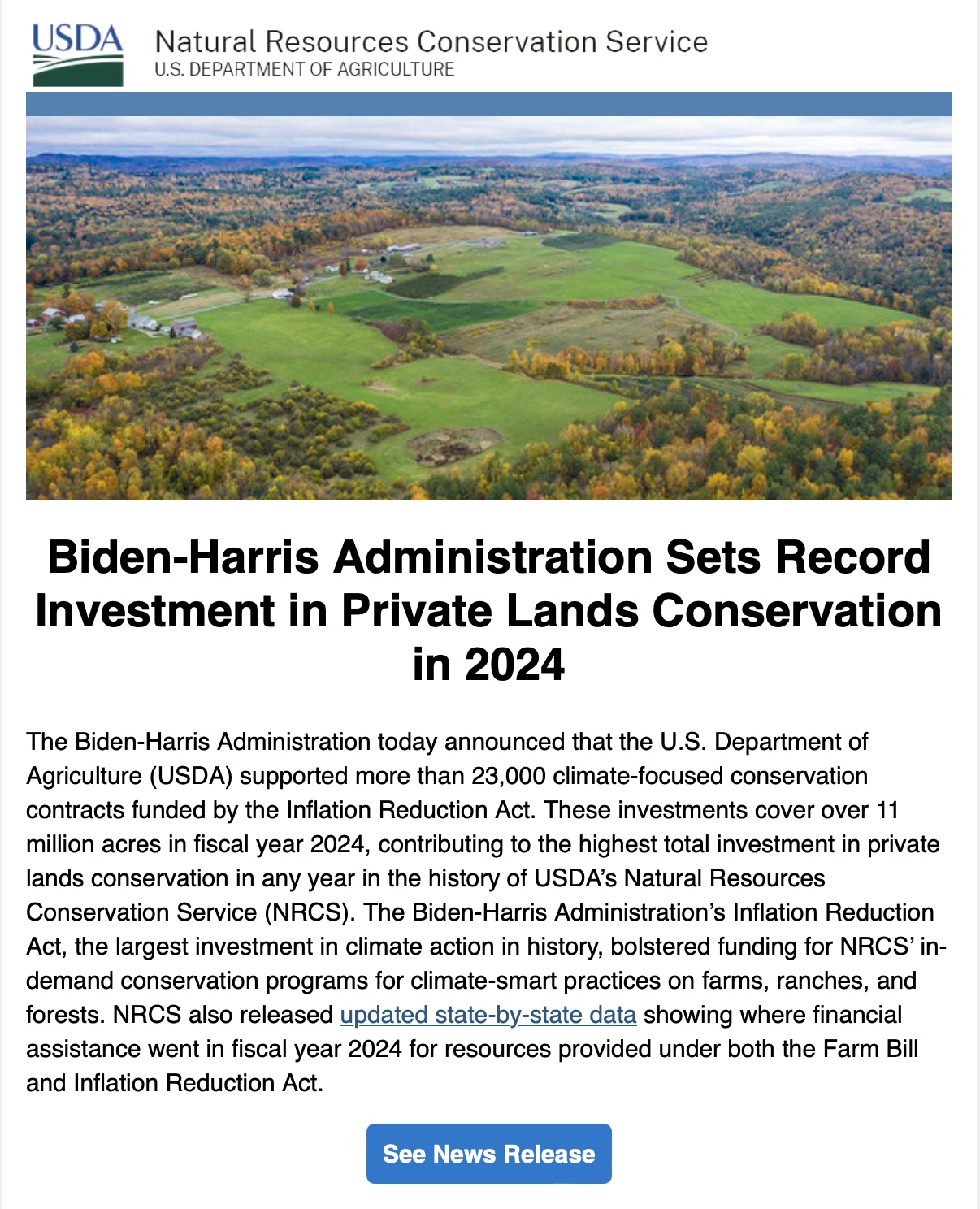 OMG, 11 million acres “conserved” in 2024 under Biden, using Inflation Reduction Act funds.
