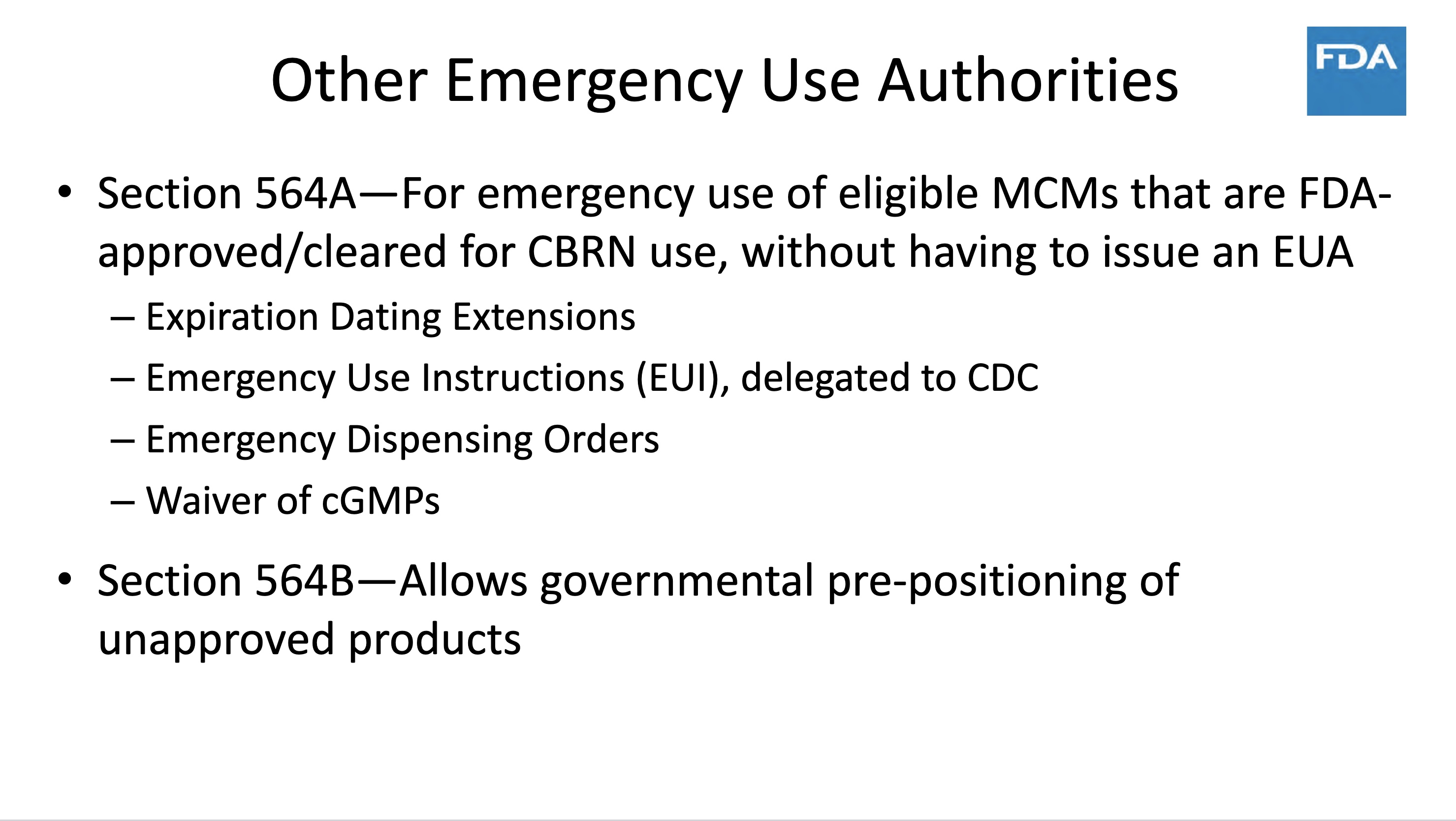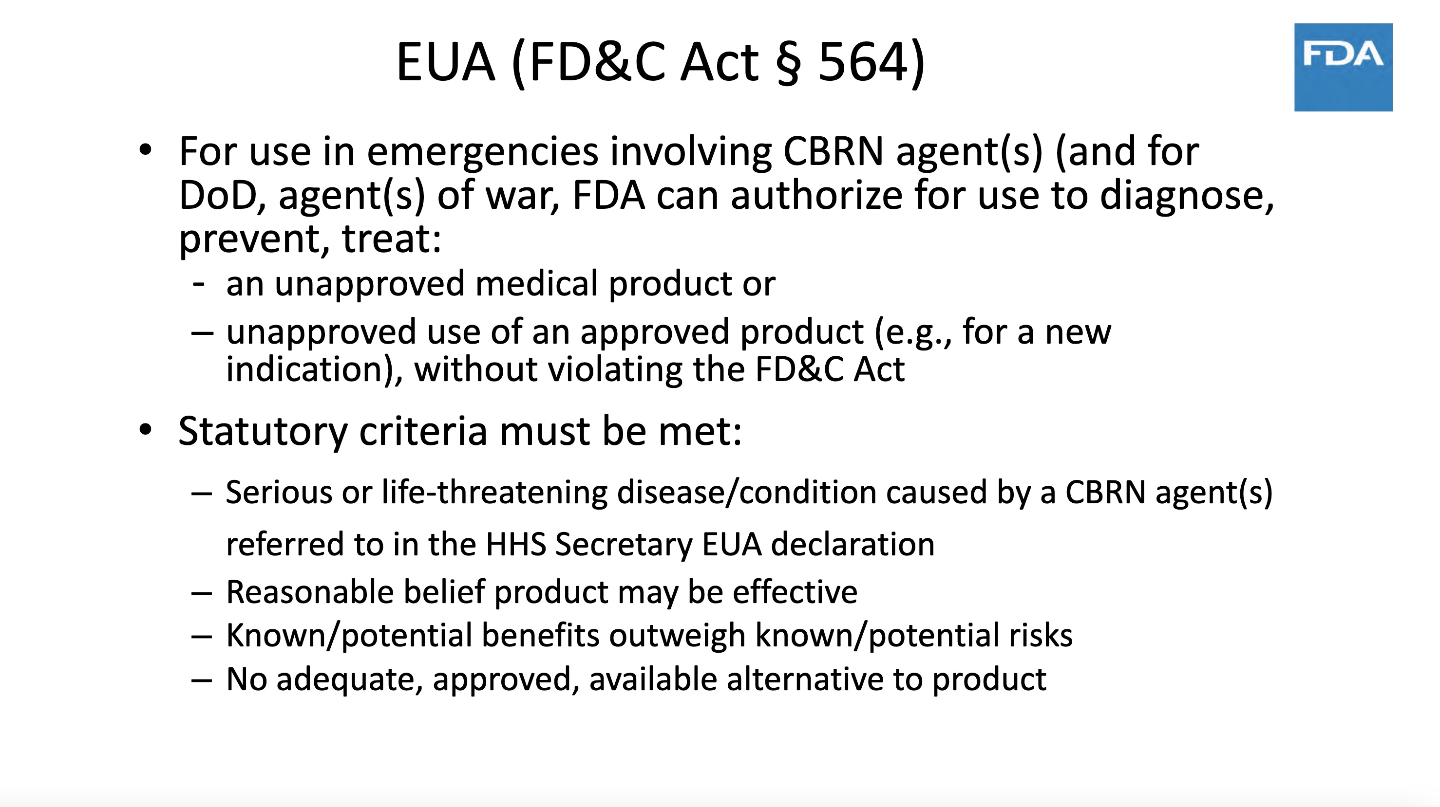 Other uses of EUAs include the ability to give out what FDA otherwise terms adulterated product.