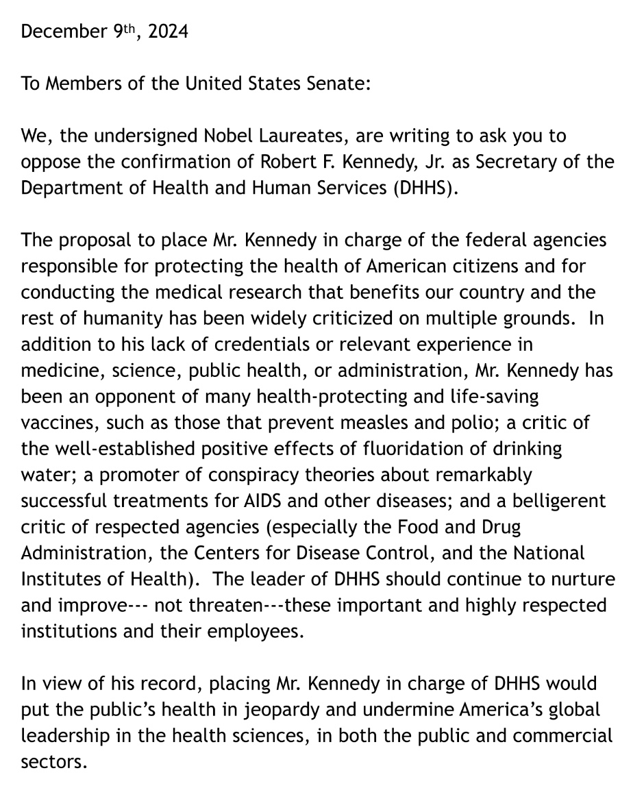 The DON’T CONFIRM KENNEDY FOR DHHS SECRETARY letter”