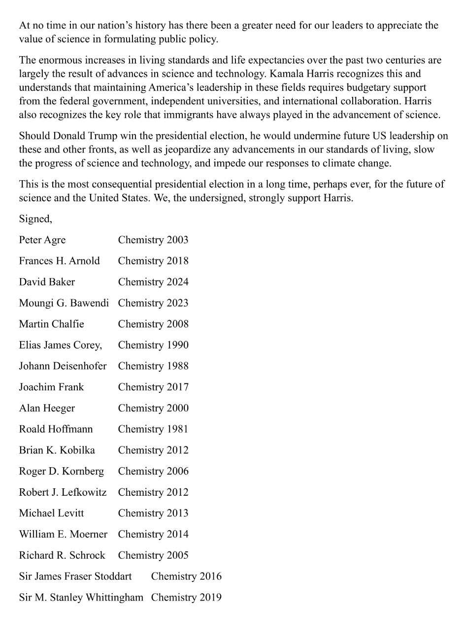 The SUPPORT FOR KAMALA HARRIS letter: