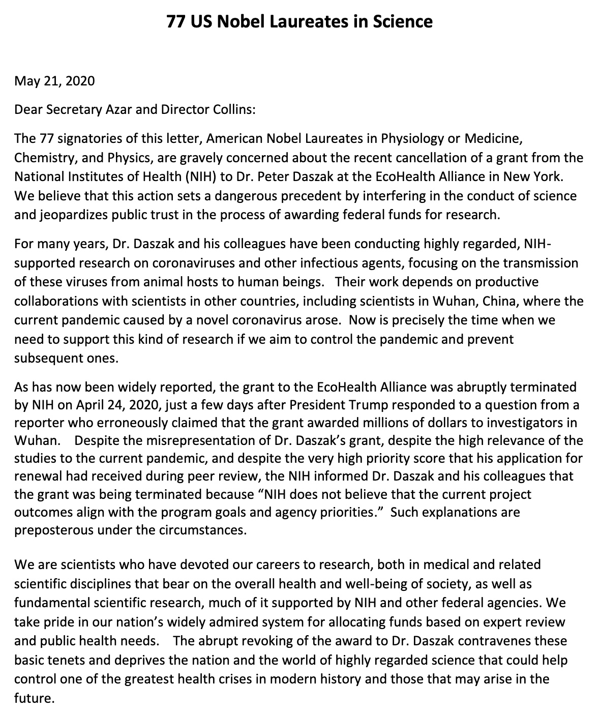 The GIVE PETER DASZAK HIS MONEY letter”