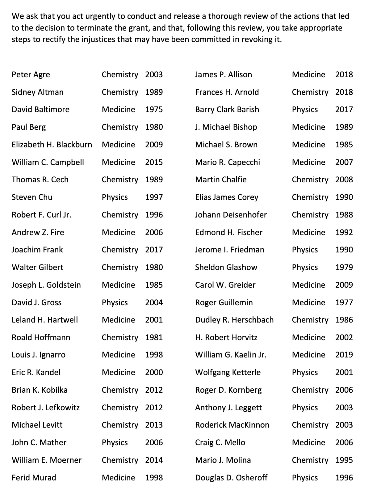 I have been asked to post the Nobel letters with the signatures, for some are behind paywalls