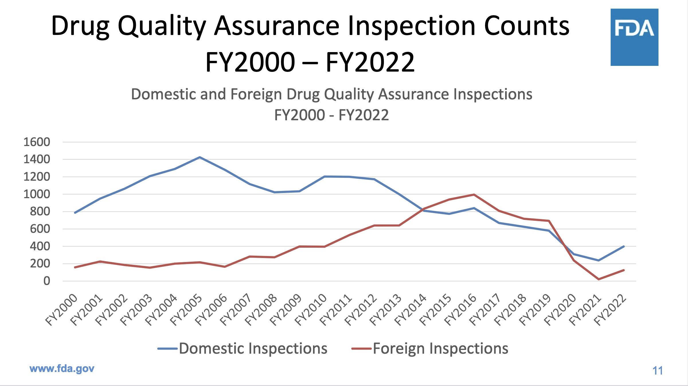 Evaluations of the manufacturing process are inadequate due to insufficient inspection staff. FDA now accepts the results of inspectors working for others nations. FDA performed less than one third of the domestic inspections in 2022 than it performed in 2005. The Government Accountability Office advised FDA last month to find a way to retain inspection staff. However, FDA instead plans to do virtual inspections in future, via videocam, which are highly unlikely to turn up problems that manufacturers are trying to hide.