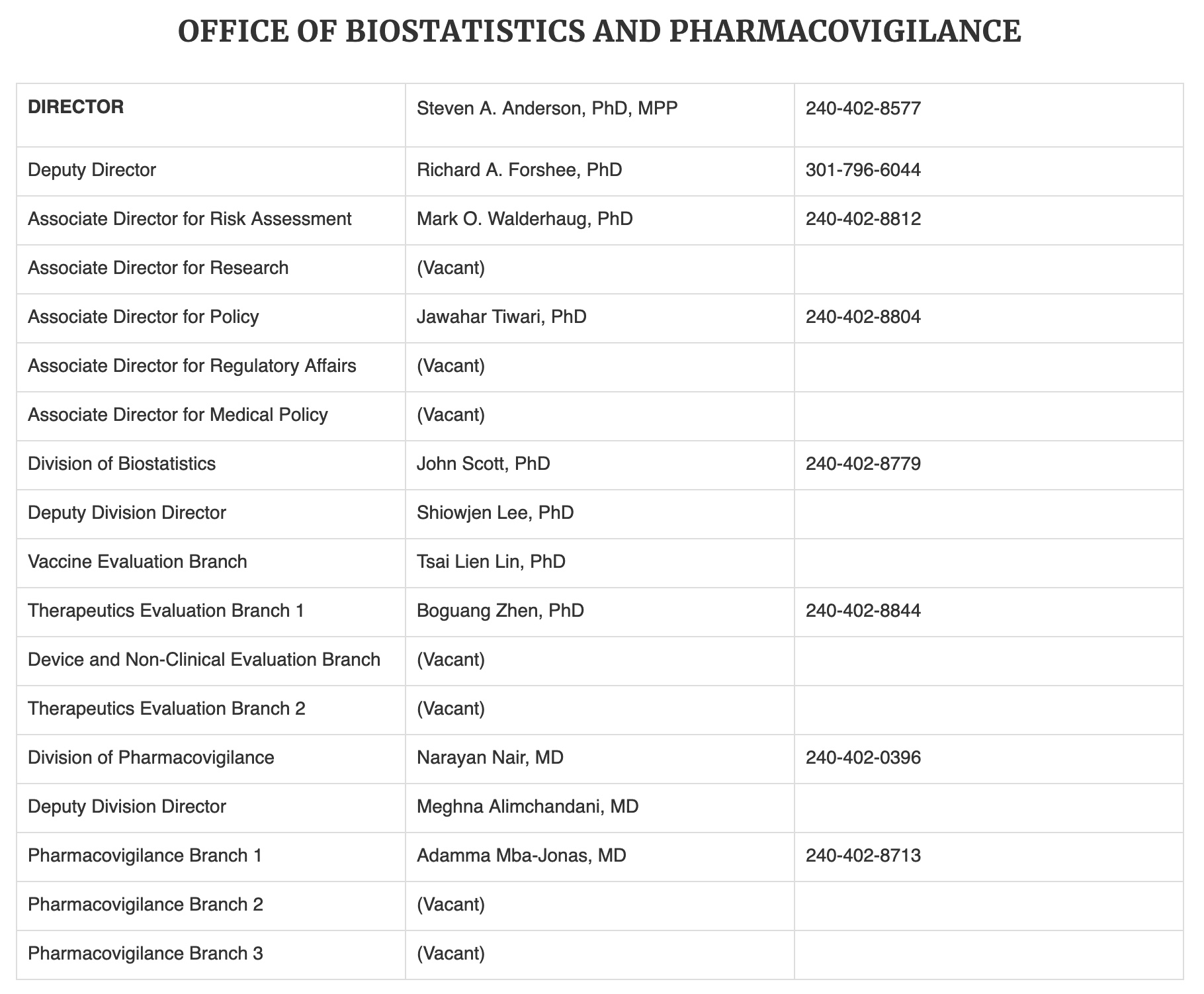 It also changed its name from the Office of Biostatistics and Epidemiology to the Office of Biostatistics and Pharmacovigilance on October 30, 2024, in an apparent effort to become harder to find, or perhaps to appear vigilant.