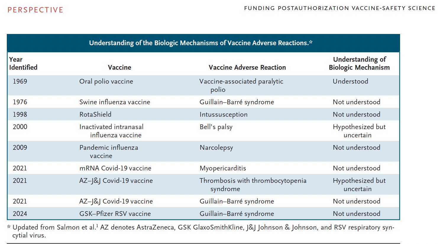 …the public is no longer satisfied with the traditional safety goal of simply detecting and quantifying the associated risks after a vaccine has been authorized for use. The public also wants public health authorities to mitigate and prevent rare but serious adverse reactions — which no longer seem rare when vaccines are given to millions or billions of people.