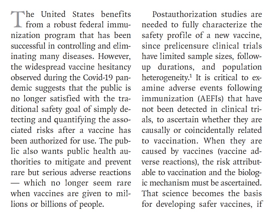 The NEJM authors established 2 straw men: that vaccine safety is not being studied post-authorization of vaccines, and that establishing biological mechanisms of vaccine injuries is crucial in the evaluation of potential vaccine injuries.