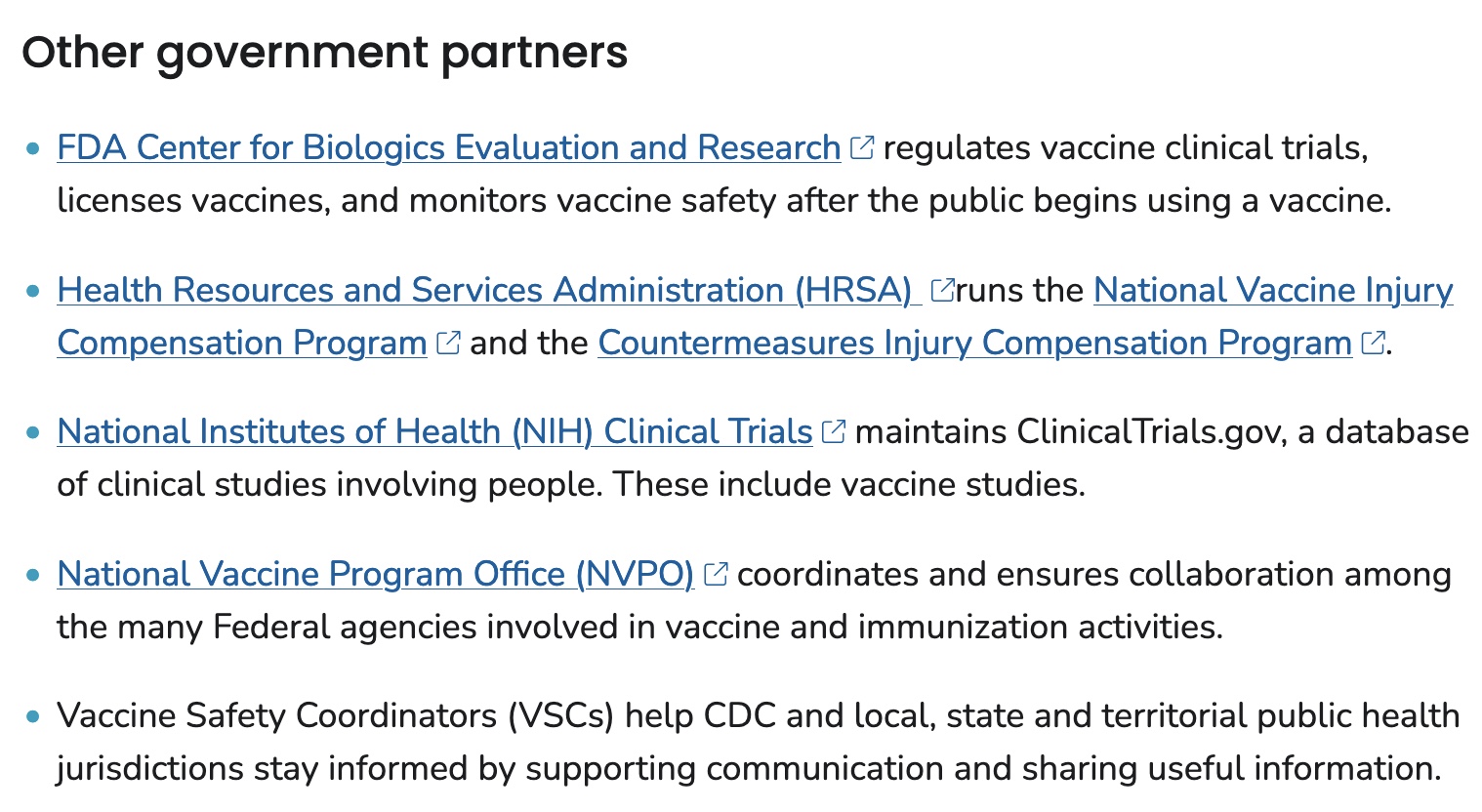The only authorized vaccines given to many millions of Americans recently are the COVID vaccines. Of course they have been studied post-authorization. There are probably hundreds of papers evaluating them, both positively and negatively. And the authors mention some of the approximately 20 databases studied by CDC and FDA to continuously evaluate vaccine safety post-authorization. FDA’s Office of Biostatistics and Pharmacovigilance is tasked with this job. So is CDC’s Immunization Safety Office. Here are the other agencies tasked with this: