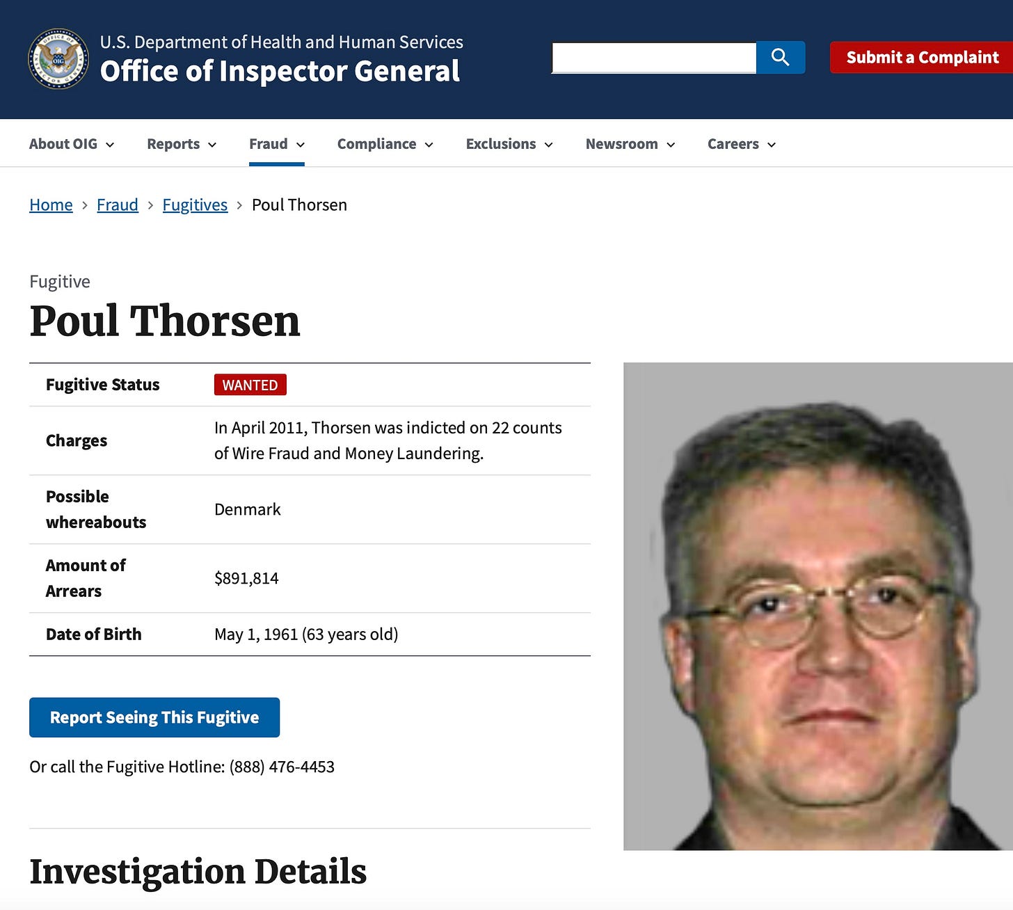 Poul Thorsen is “WANTED” by HHS’ IG for cheating CDC out of a million dollars. He gave them whatever results CDC sought, so they aren’t looking for him very hard. Funny that they have never been able to find him.