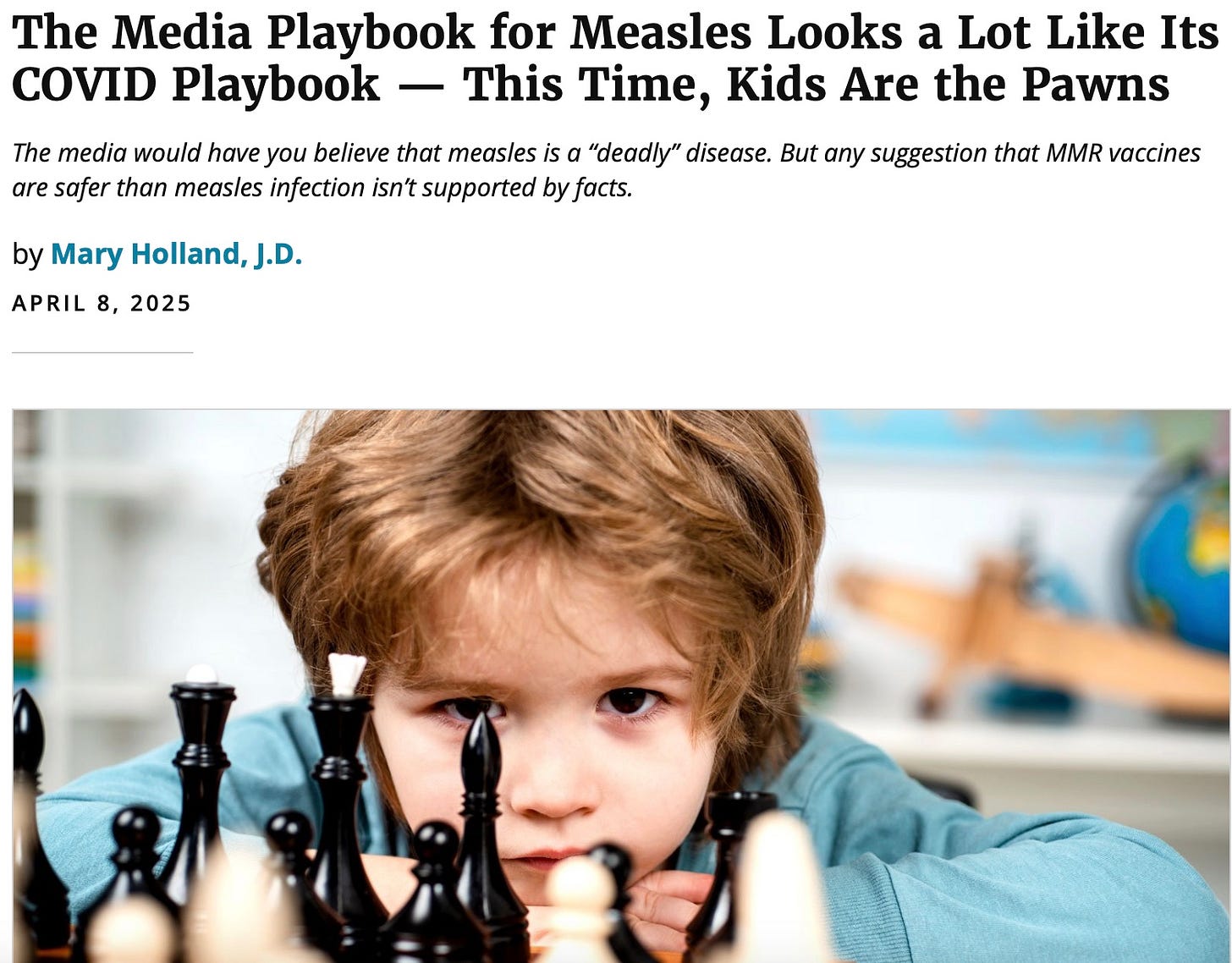 Right now, we are being subjected to a media blitz designed to scare us—it has been effective—regarding measles, which is also designed to help push through the WHO’s Pandemic Treaty. I offer a heartfelt call to both sides to see that there is no easy answer to the measles conundrum. The vaccine is not all bad or all good, and the disease is only good if you get over it safety.