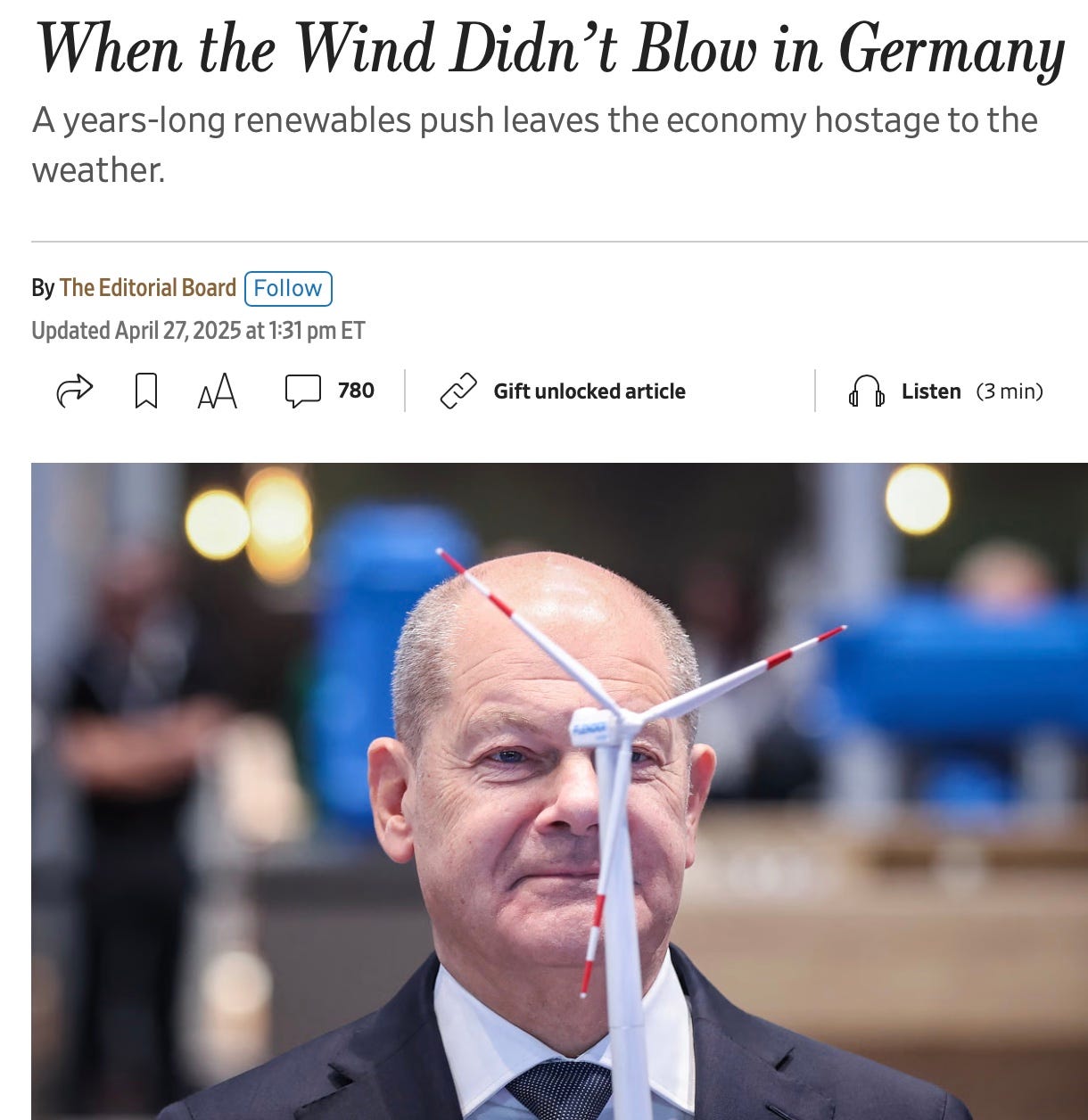 It’s been a miserable 2025 for wind and solar in Germany.https://www.wsj.com/opinion/germany-energy-renewables-wind-solar-friedrich-merz-264091b7