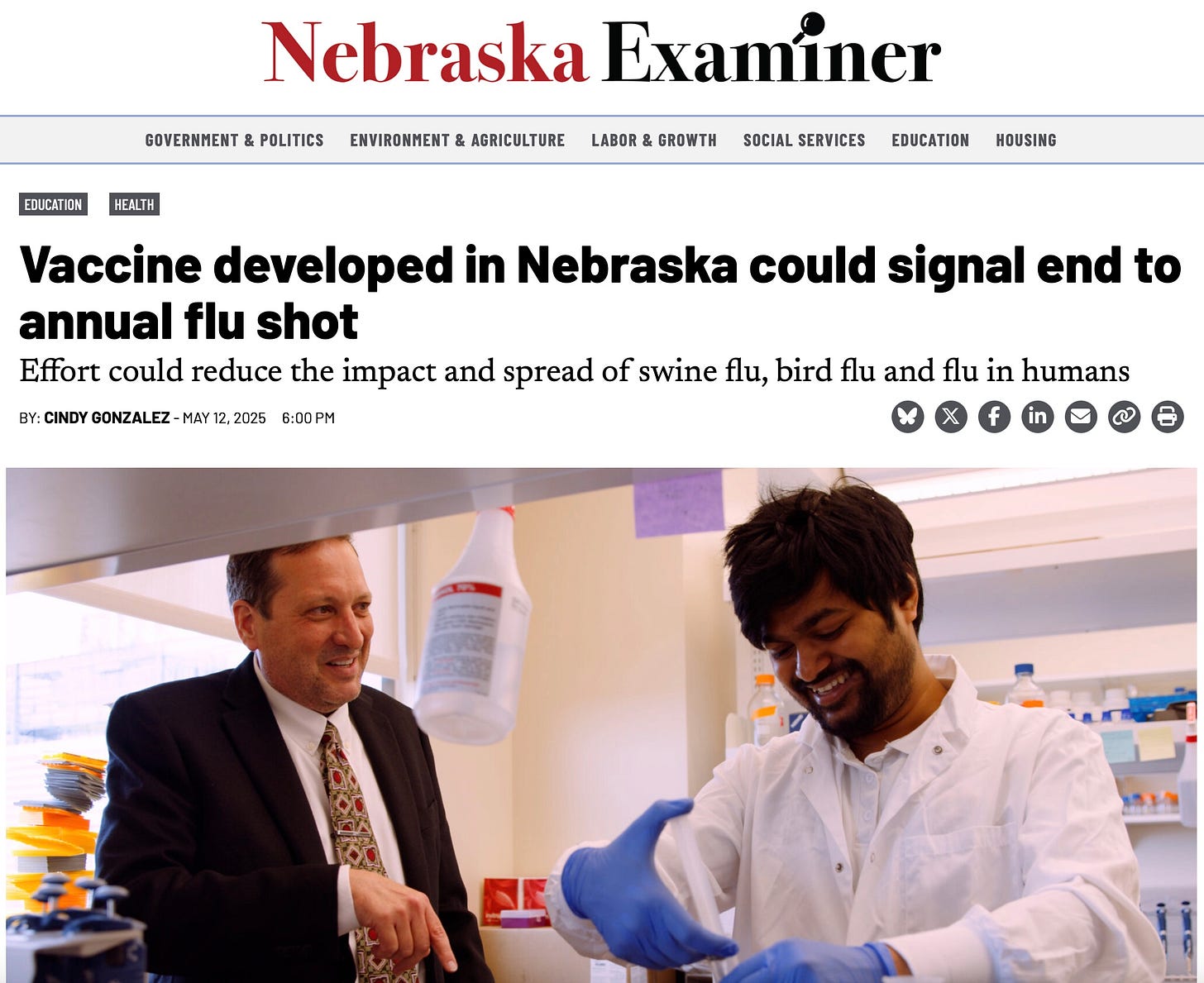 Is Nebraska racing to beat NIAID over a universal flu vaccine (for humans and animals, including bird flu?)