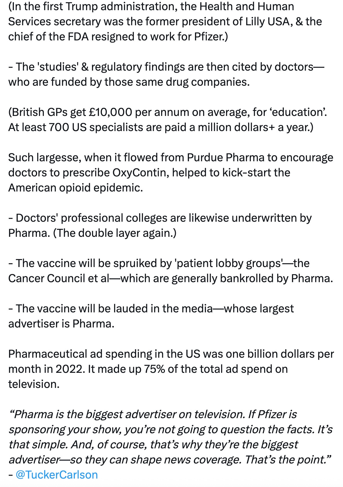 The COVID shots were launched on us only after a long series of bribes to the relevant parties.