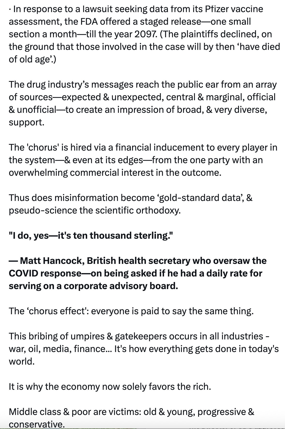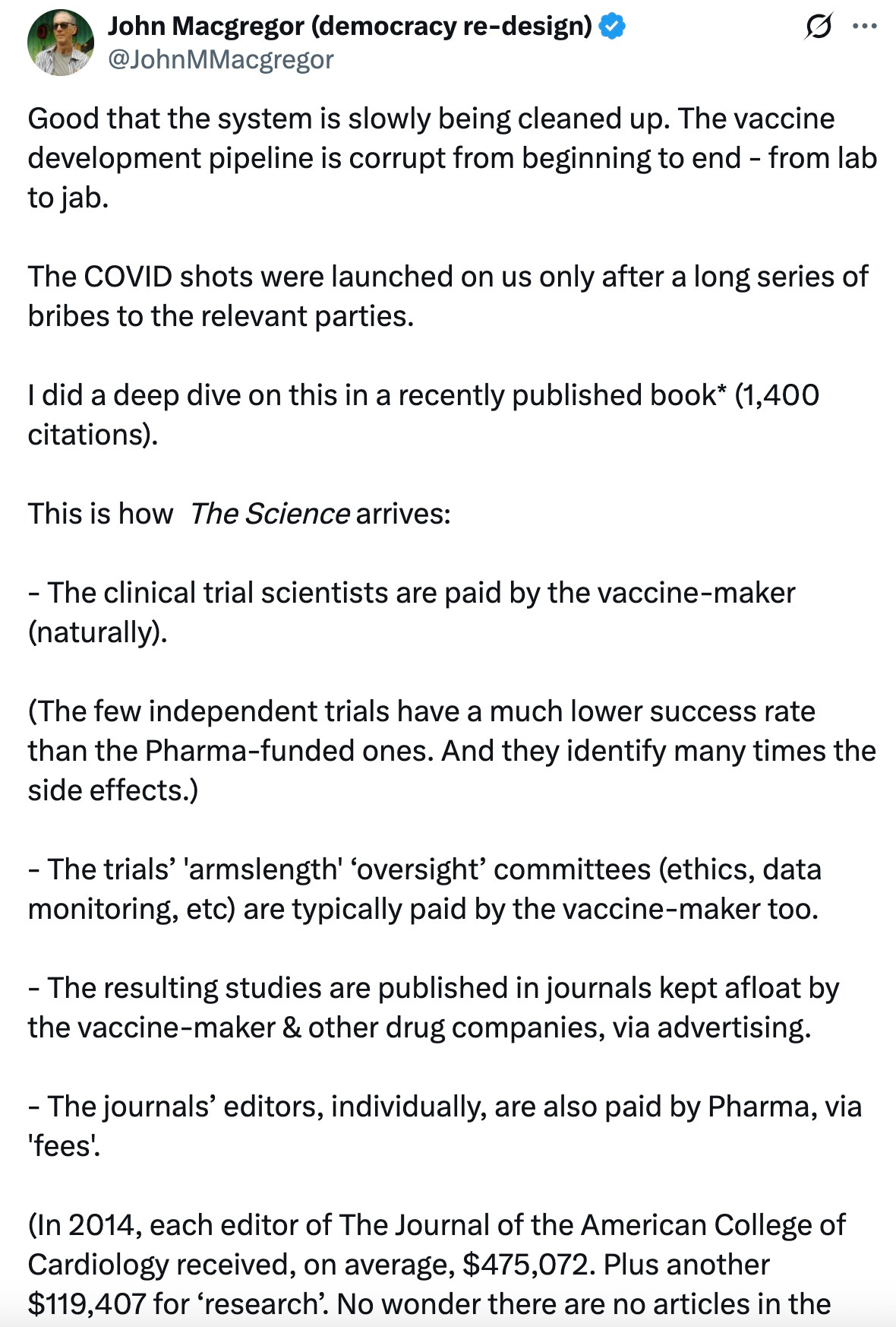 Good that the system is slowly being cleaned up. The vaccine development pipeline is corrupt from beginning to end – from lab to jab.